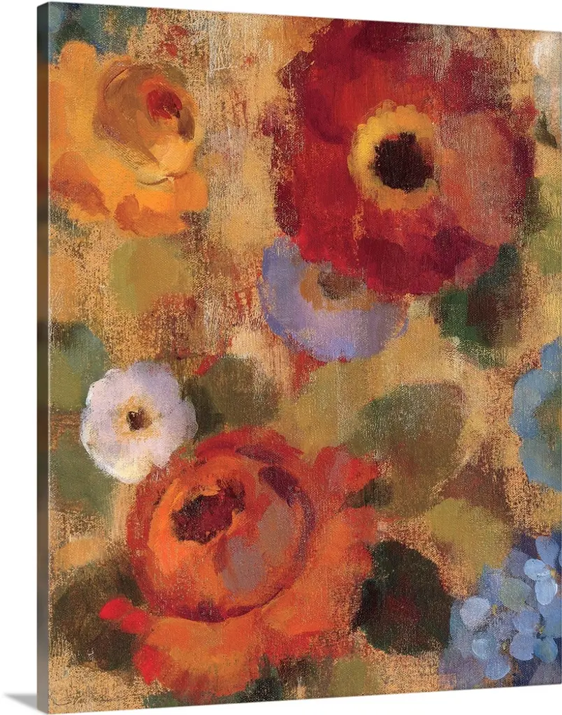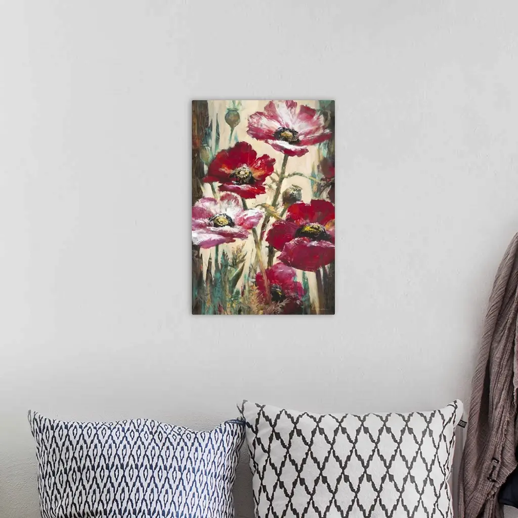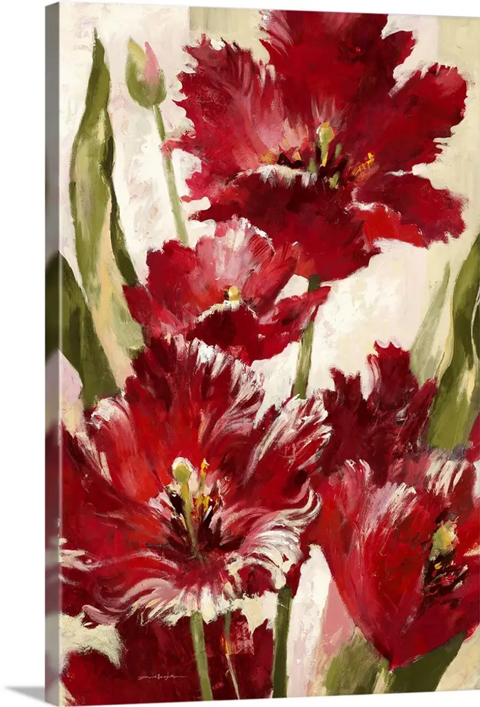 Contemporary painting of vibrant red poppy flowers.
