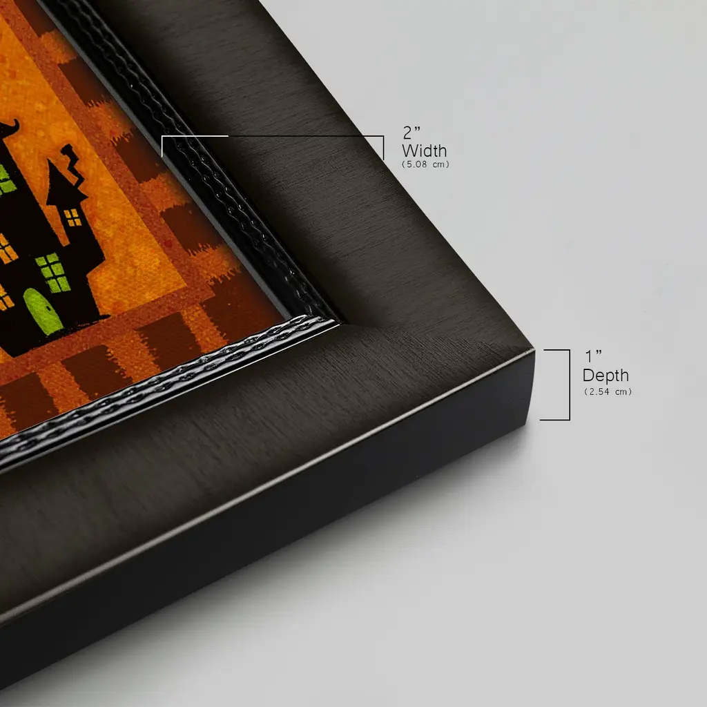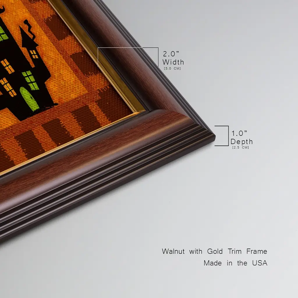 Spooktacular Collection D Premium Framed Canvas- Ready to Hang A Premium Framed Canvas created to last. Framed in distressed wood and available in an array of sizes and colors Featuring a beveled a solid wood stretcher bar, each piece comes ready to hand 3 SIZES AVAILABLE 21''X37'' - Overall Size 25''X45'' - Overall Size 29''x53'' - Overall Size Each piece is made to order. Each piece comes with hanging hardware. Made in the USA Ready to Hang Giclee Paper Print Acrylic Glass Beveled Matt Board