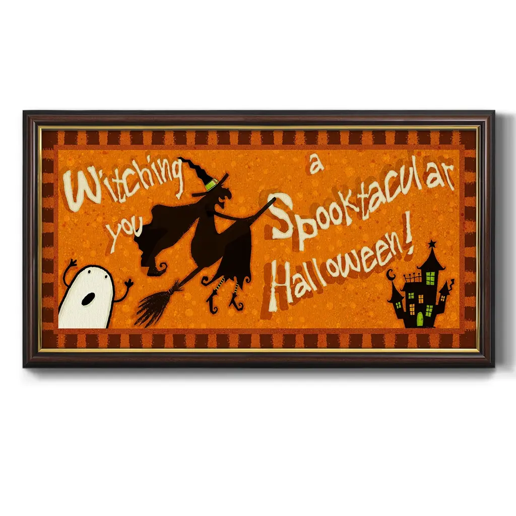 Spooktacular Collection D Premium Framed Canvas- Ready to Hang A Premium Framed Canvas created to last. Framed in distressed wood and available in an array of sizes and colors Featuring a beveled a solid wood stretcher bar, each piece comes ready to hand 3 SIZES AVAILABLE 21''X37'' - Overall Size 25''X45'' - Overall Size 29''x53'' - Overall Size Each piece is made to order. Each piece comes with hanging hardware. Made in the USA Ready to Hang Giclee Paper Print Acrylic Glass Beveled Matt Board