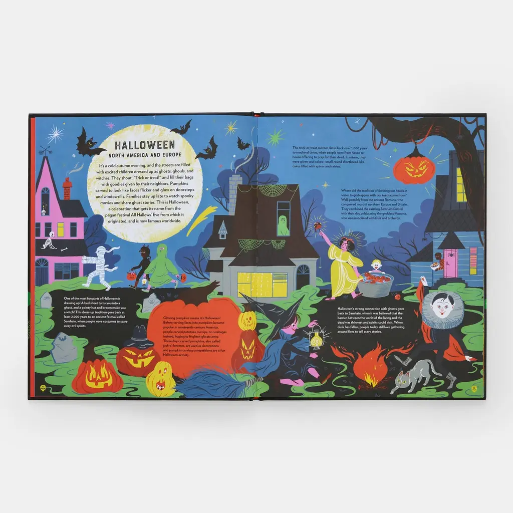 Welcome to the spookiest, and most fun, book of celebrations from around the world!You’ll have heard of Halloween, and maybe Día de Muertos, or Obon too, but did you know there are spooky festivals all over the world?Across every continent there are festivals that celebrate and honor spirits. Children will delight in discovering the stories behind these 21 amazing celebrations.With text that captures the joy in many of these festivals and the respectful nature of others, and stunning artwork with fun details to spot, children will learn all about the interesting ways these festivals are celebrated today.This is a brilliant book for 5-8-year-olds that doesn’t just celebrate Halloween but can be enjoyed year-round. The text builds on children’s knowledge of recognizable festivals and introduces them to others they may not have heard of. With playful text that celebrates cultural traditions, this book encourages children to be curious about and respectful of the world around them.Festivals featured: Awuru Odo (Nigeria); Basler Fasnacht – (Basel, Switzerland); Chuseok (South Korea;) Correfoc (Barcelona, Catalonia); Día de Muertos (Mexico); Fastelavn (Scandinavia, Iceland, Estonia and the Faroe Isles); Fèt Gede (Haiti); Fête des Masques (Mali); Gai Jatra (Nepal); Halloween (North America and Europe); Khamis al-Amwat (the Levant); La Festa di Ognissanti (Italy); Mari Lwyd (Wales); Matariki (Aotearoa New Zealand); Ouidah Vodun Festival (Ouidah, Benin); Pchum Ben (Cambodia); Pitru Paksha (South Asia); Samhain (Northern Europe); Setsubun (Japan); Walpurgis Night (Northern Europe); Zhongyuan (China).Ages 5-8