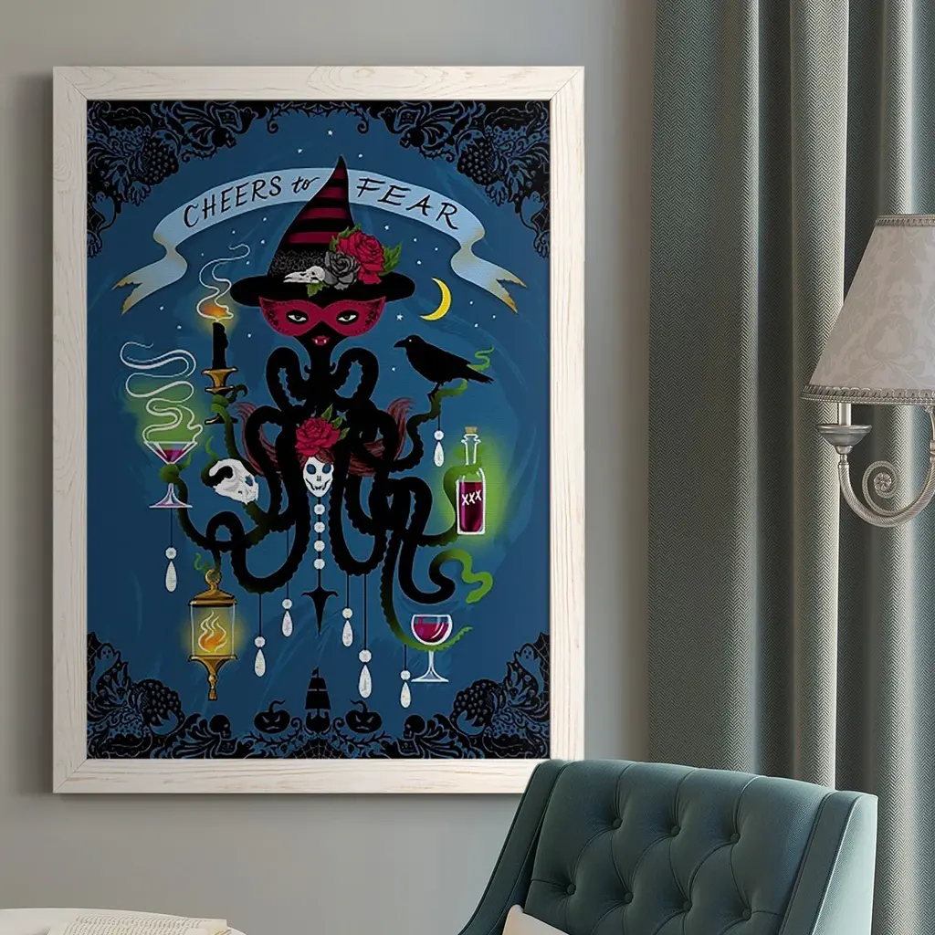 Spooky Cephalopod Chandeliers I-Premium Framed Canvas - Ready To Hang - 31.5x43.5 - Maple