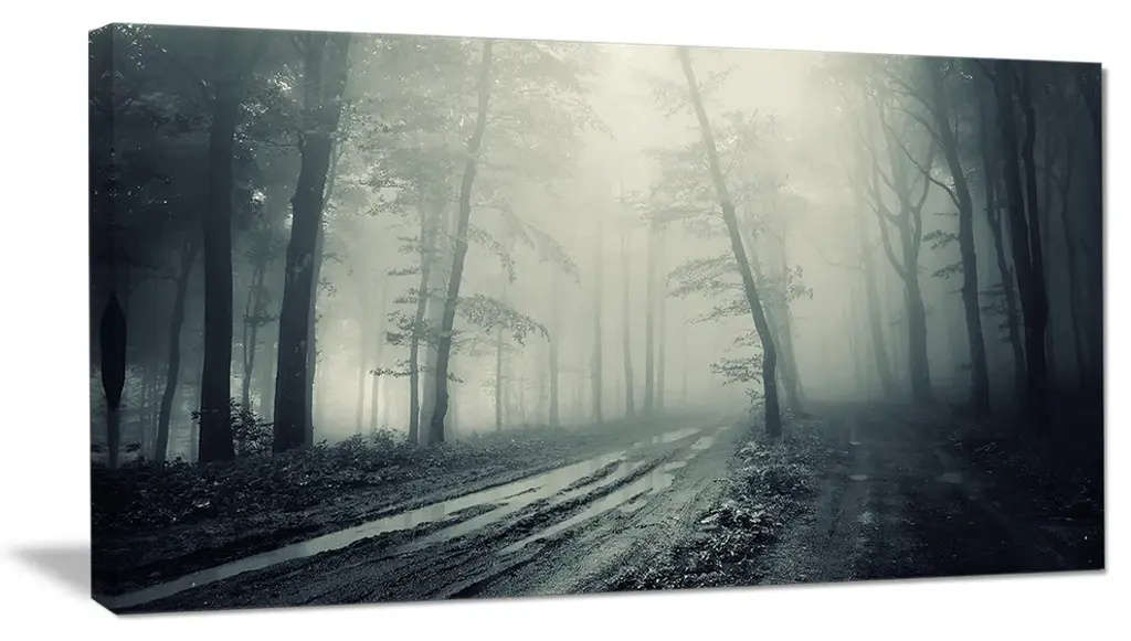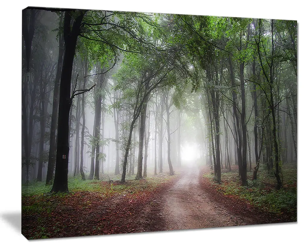 The Spooky Dark Forest with Fog canvas art print is sure to make an impression on anyone who sees it. This artwork is gallery wrapped around a 1-inch solid wood frame and arrives carefully packaged and entirely ready to hang on the wall. Design Art only uses the highest resolution and pigments to ensure a crisp colorful print that is never faded or pixelated. This artwork is sure to be a conversation starter in any home or office.