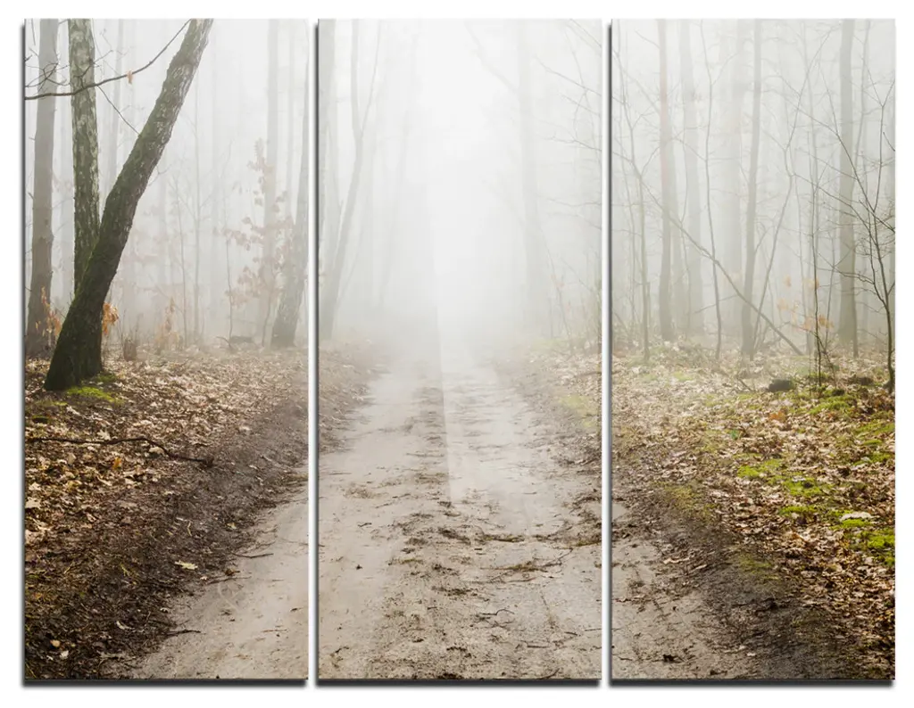 "Spooky Dark Forest With Fog" Photo Canvas Print, 3 Panels, 36"x28"