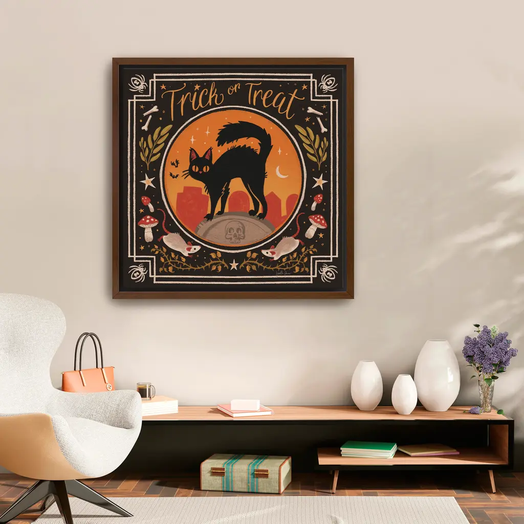 Eerie yet enchanting, the black cat strikes a regal pose on its autumn throne. The scene buzzes with the crisp air of Halloween and quiet feline magic. Our Gallery Wrap Canvas Prints are proudly assembled with high quality materials in California, USA. Each piece is printed on a thick, archival grade canvas using Giclee technology. It is then hand-stretched by our experienced artisans over solid wood bars, which will not warp over time. The final product is a piece personally crafted for you to confidently display on your wall. Care and Assembly: Ensure that the location of your piece has little to no exposure to heat, sunlight, and moisture. Wipe clean, only if needed. Each piece includes a sawtooth hanger to hang on your wall horizontally.