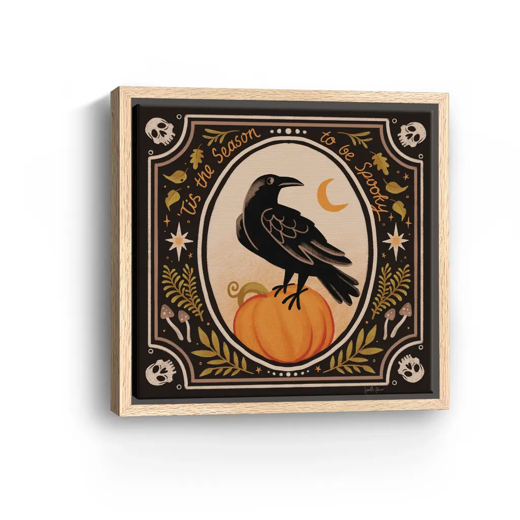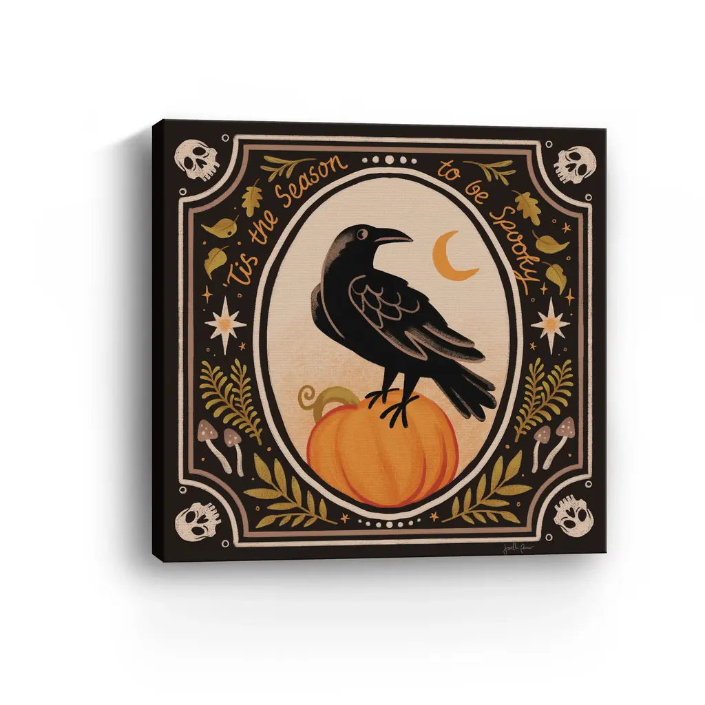 A brooding raven atop a pumpkin sets the tone for eerie elegance. It's the kind of spooky pairing that whispers mystery into every corner. Our Gallery Wrap Canvas Prints are proudly assembled with high quality materials in California, USA. Each piece is printed on a thick, archival grade canvas using Giclee technology. It is then hand-stretched by our experienced artisans over solid wood bars, which will not warp over time. The final product is a piece personally crafted for you to confidently display on your wall. Care and Assembly: Ensure that the location of your piece has little to no exposure to heat, sunlight, and moisture. Wipe clean, only if needed. Each piece includes a sawtooth hanger to hang on your wall horizontally.