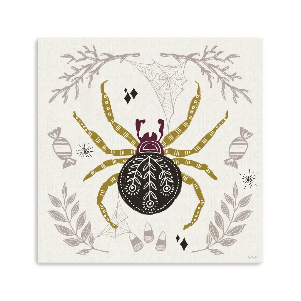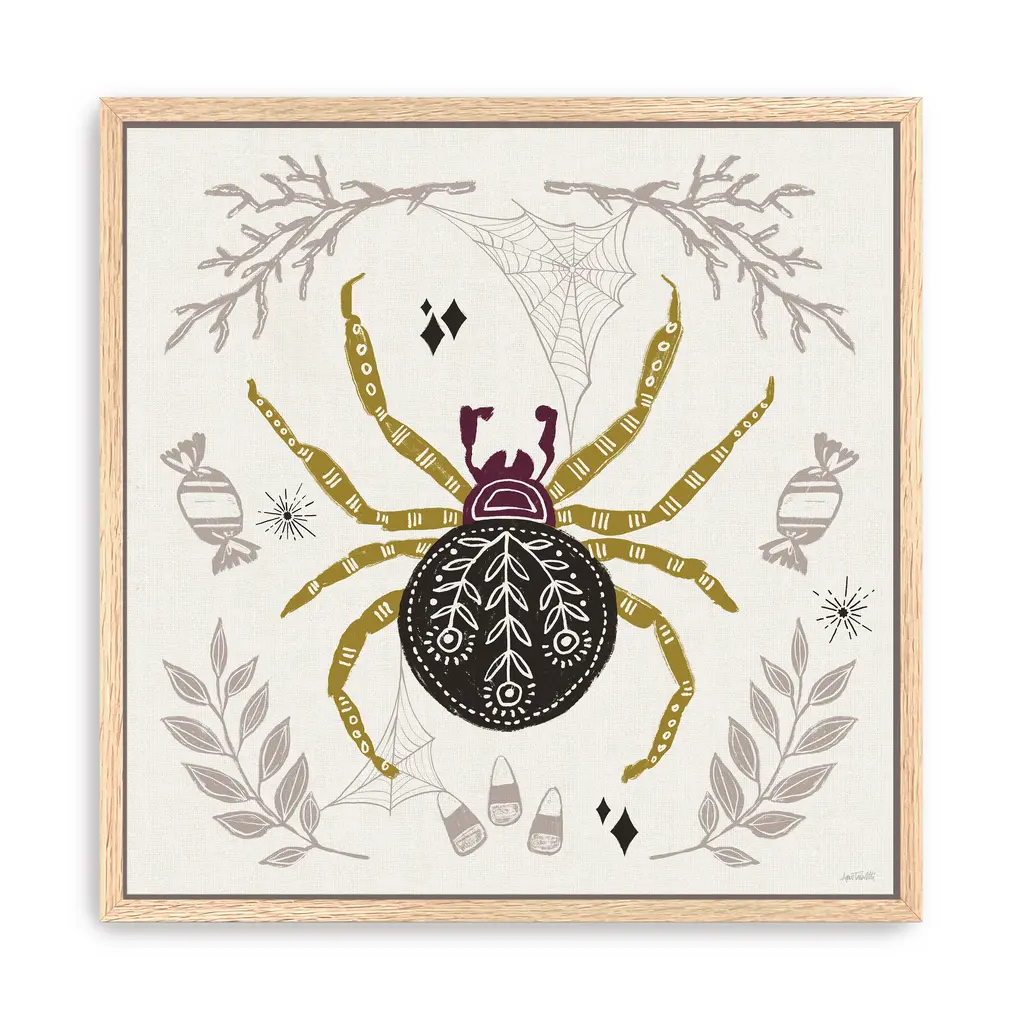 Celebrate spooky season with a spider surrounded by soft taupe ferns, candy swirls, and playful sparkles. This Halloween wall art blends rustic autumn tones with a folk-art twist, perfect for cozy October vibes. Our Gallery Wrap Canvas Prints are proudly assembled with high quality materials in California, USA. Each piece is printed on a thick, archival grade canvas using Giclee technology. It is then hand-stretched by our experienced artisans over solid wood bars, which will not warp over time. The final product is a piece personally crafted for you to confidently display on your wall. Care and Assembly: Ensure that the location of your piece has little to no exposure to heat, sunlight, and moisture. Wipe clean, only if needed. Each piece includes hanging hardware to hang on your wall horizontally.