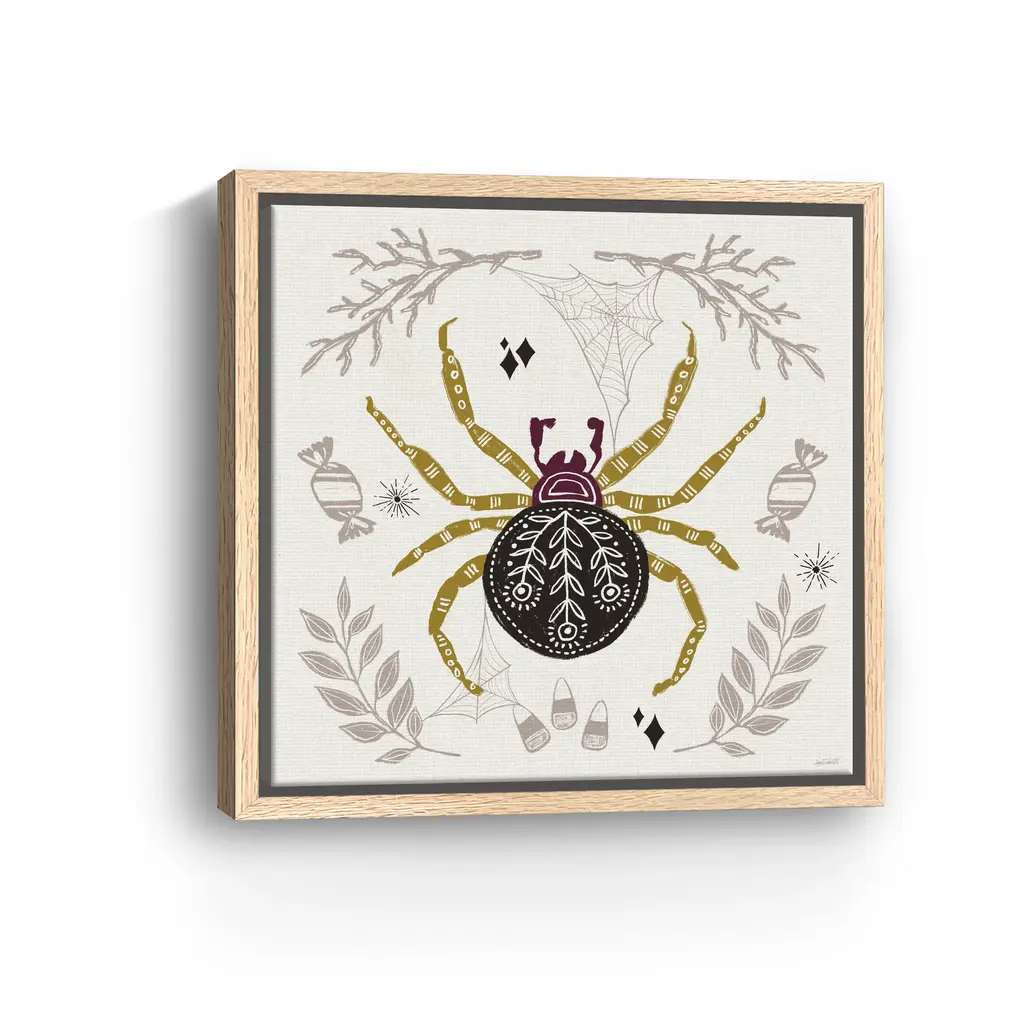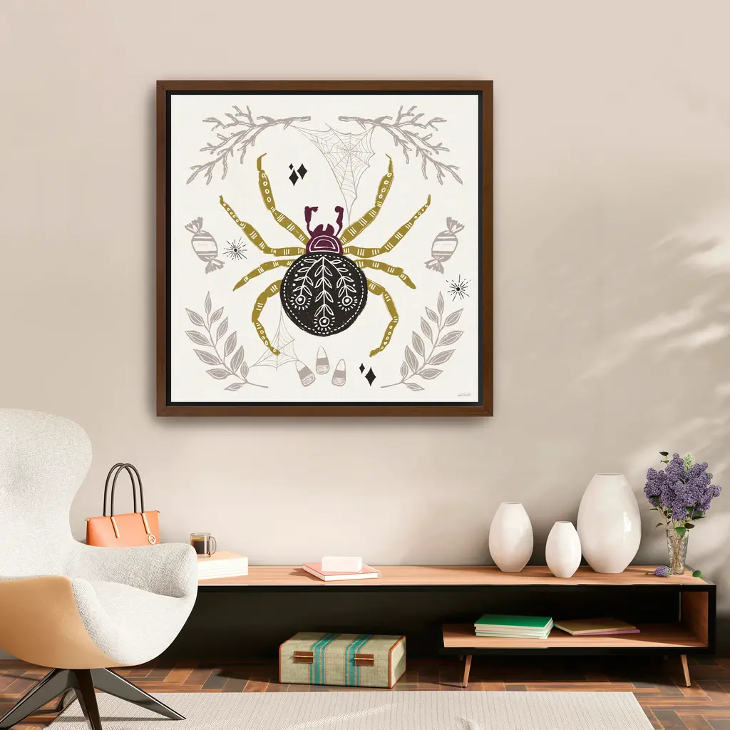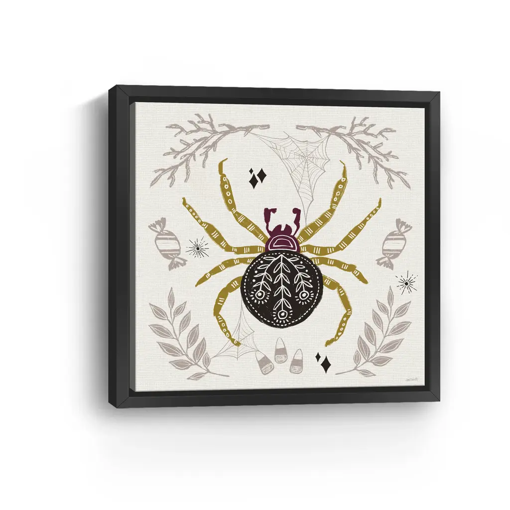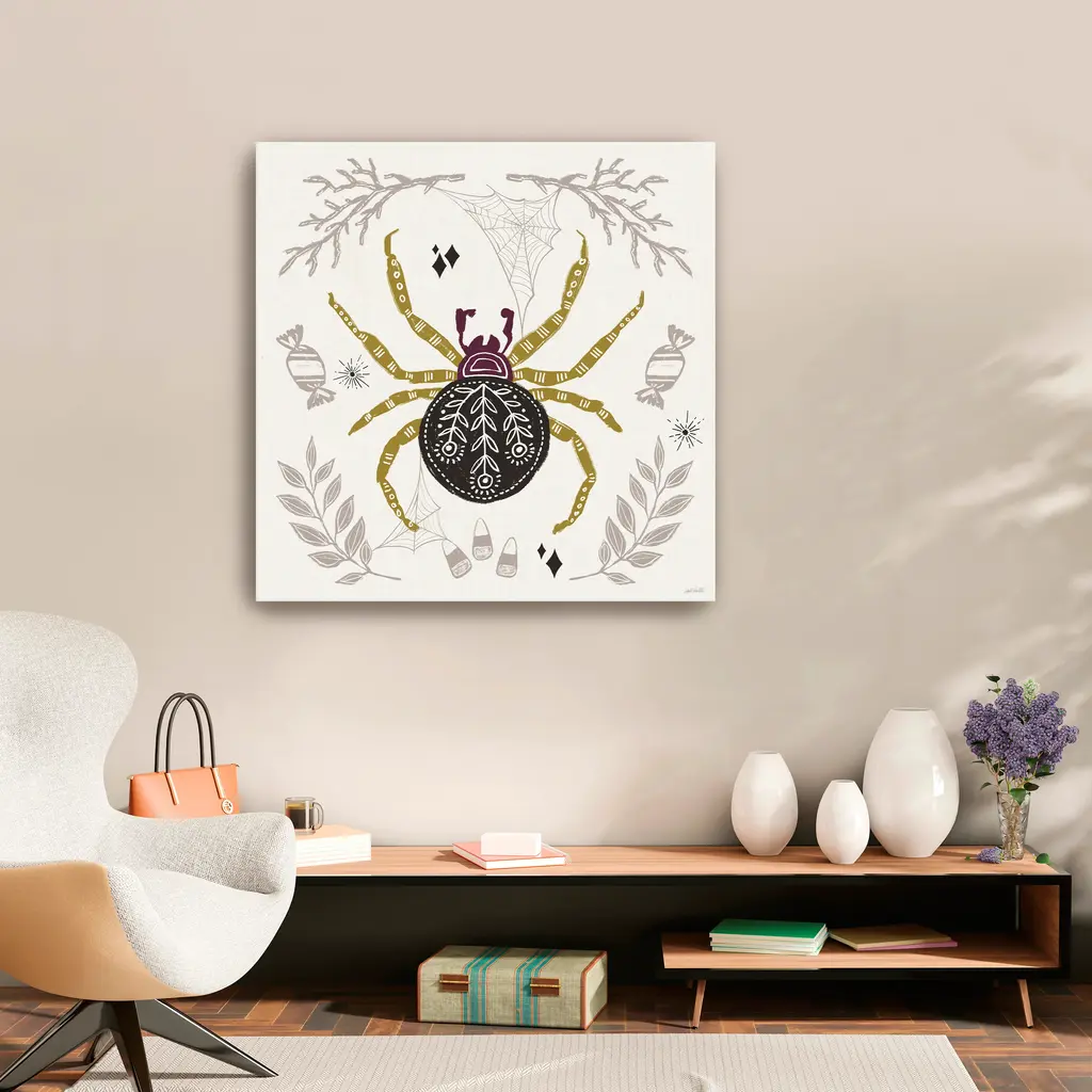 Celebrate spooky season with a spider surrounded by soft taupe ferns, candy swirls, and playful sparkles. This Halloween wall art blends rustic autumn tones with a folk-art twist, perfect for cozy October vibes. Our Gallery Wrap Canvas Prints are proudly assembled with high quality materials in California, USA. Each piece is printed on a thick, archival grade canvas using Giclee technology. It is then hand-stretched by our experienced artisans over solid wood bars, which will not warp over time. The final product is a piece personally crafted for you to confidently display on your wall. Care and Assembly: Ensure that the location of your piece has little to no exposure to heat, sunlight, and moisture. Wipe clean, only if needed. Each piece includes hanging hardware to hang on your wall horizontally.