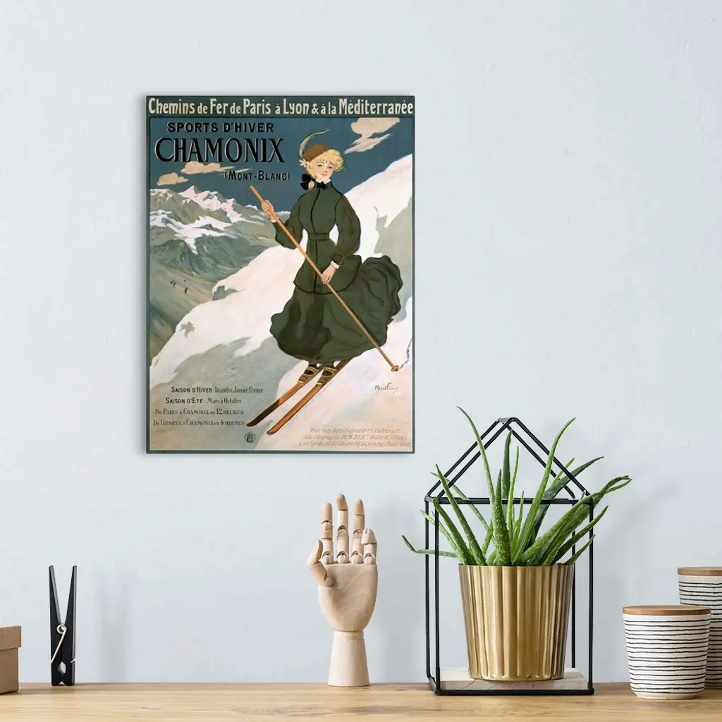 Sports dHiver Chamonix, Mont Blanc, Vintage Poster, by Abel Faivre wall art for home and office decor. Discover canvas art prints, photos, mural, big canvas art and framed wall art in GreatBigCanvas.com's varied collections.