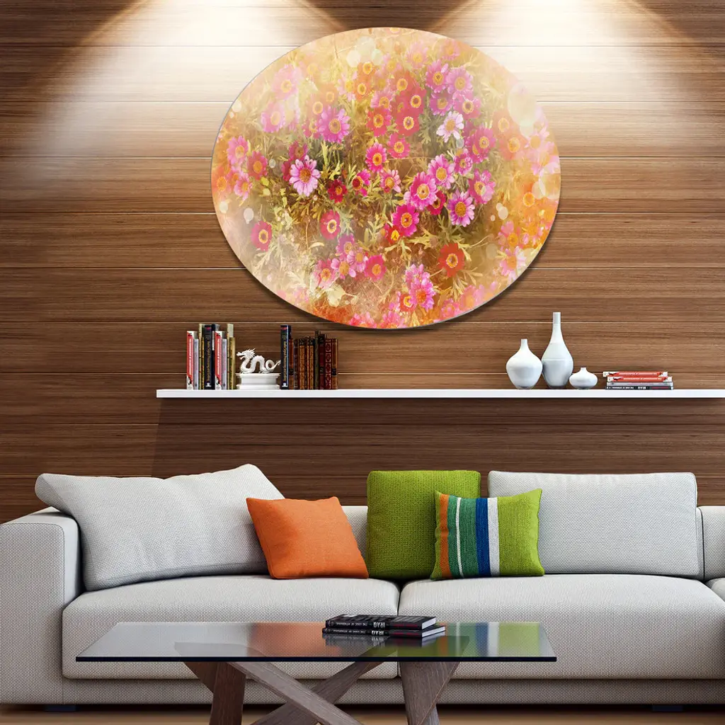 Spring Background With Little Flowers, Floral Round Metal Wall Art, 36"