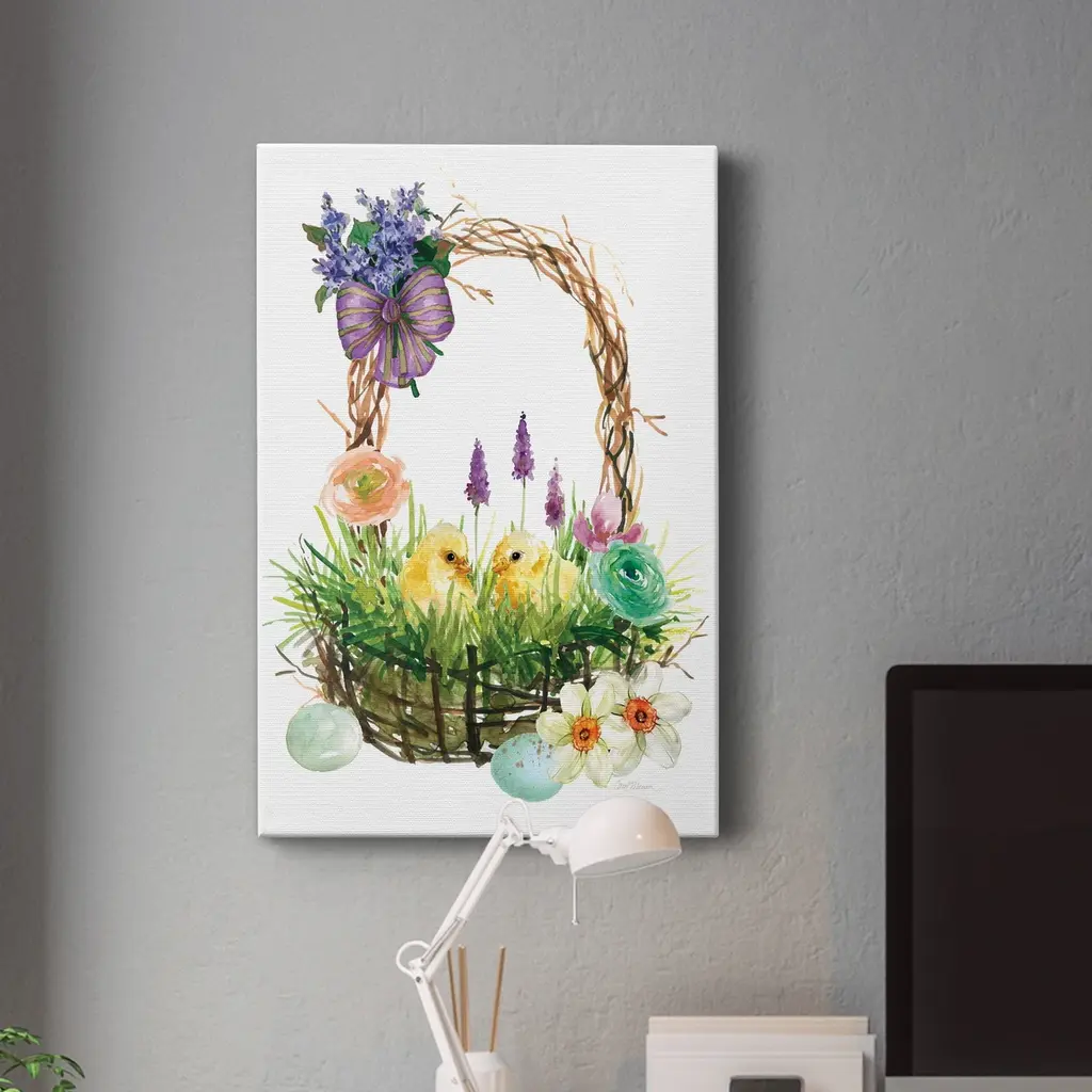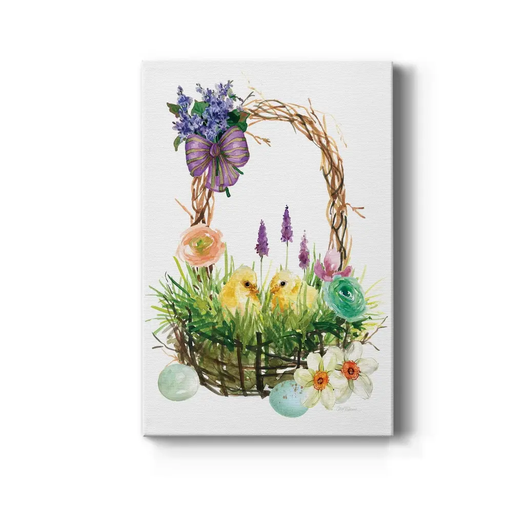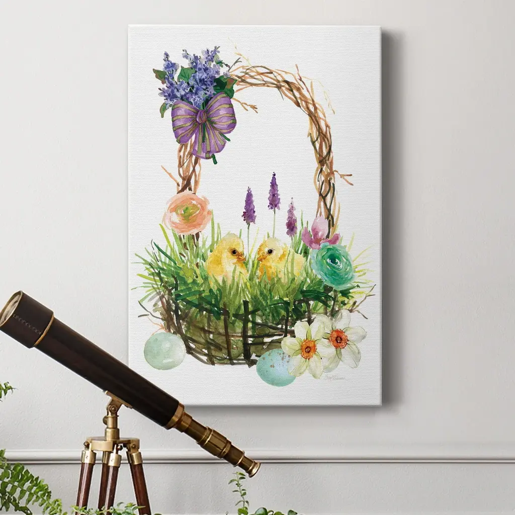Spring Chick Basket Premium Gallery Wrapped Canvas - Ready To Hang - 24x36