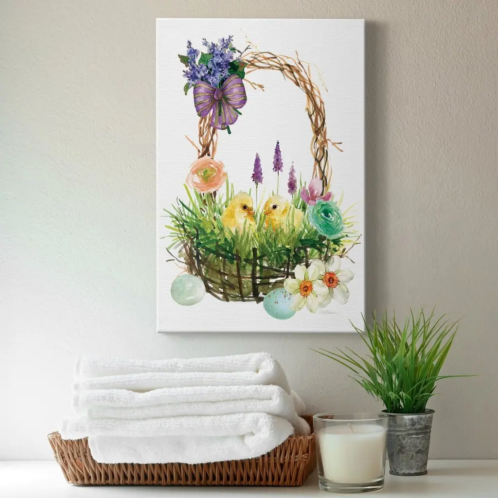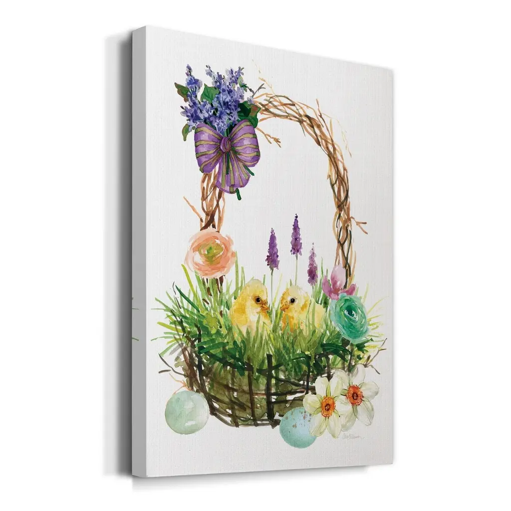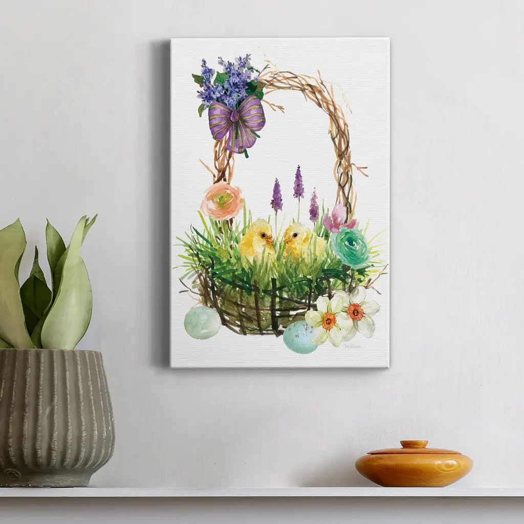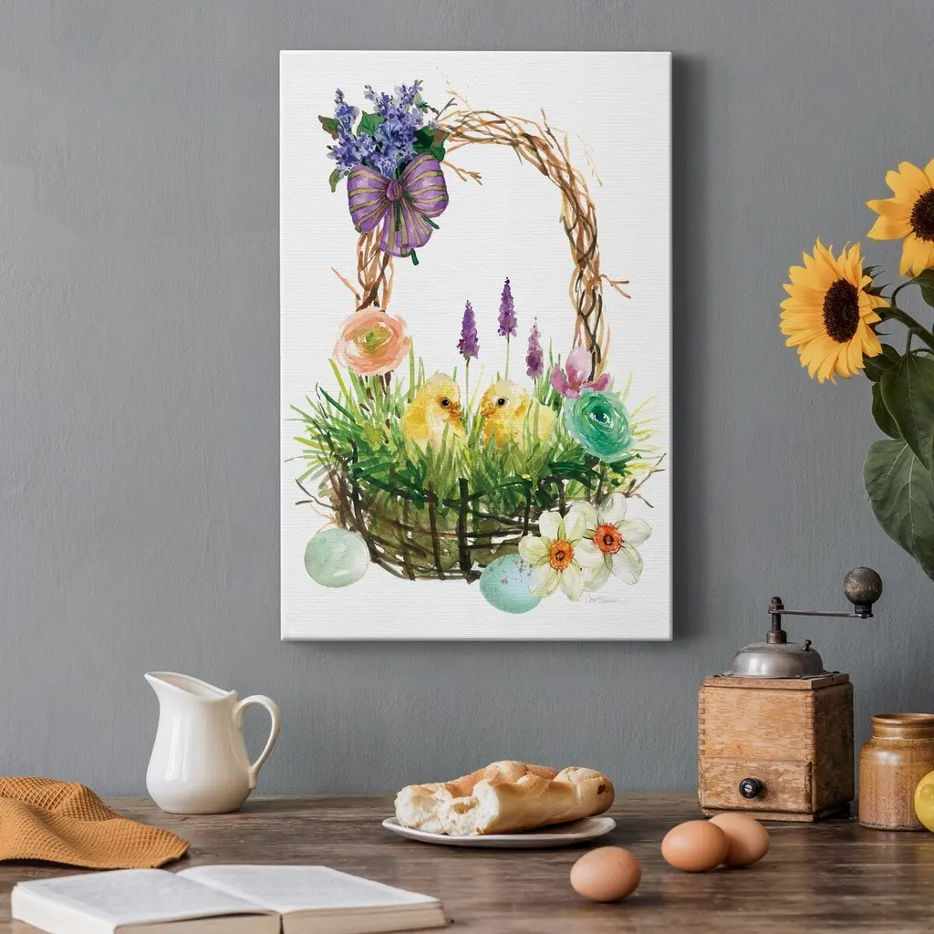 Spring Chick Basket Premium Gallery Wrapped Canvas - Ready To Hang - 24x36
