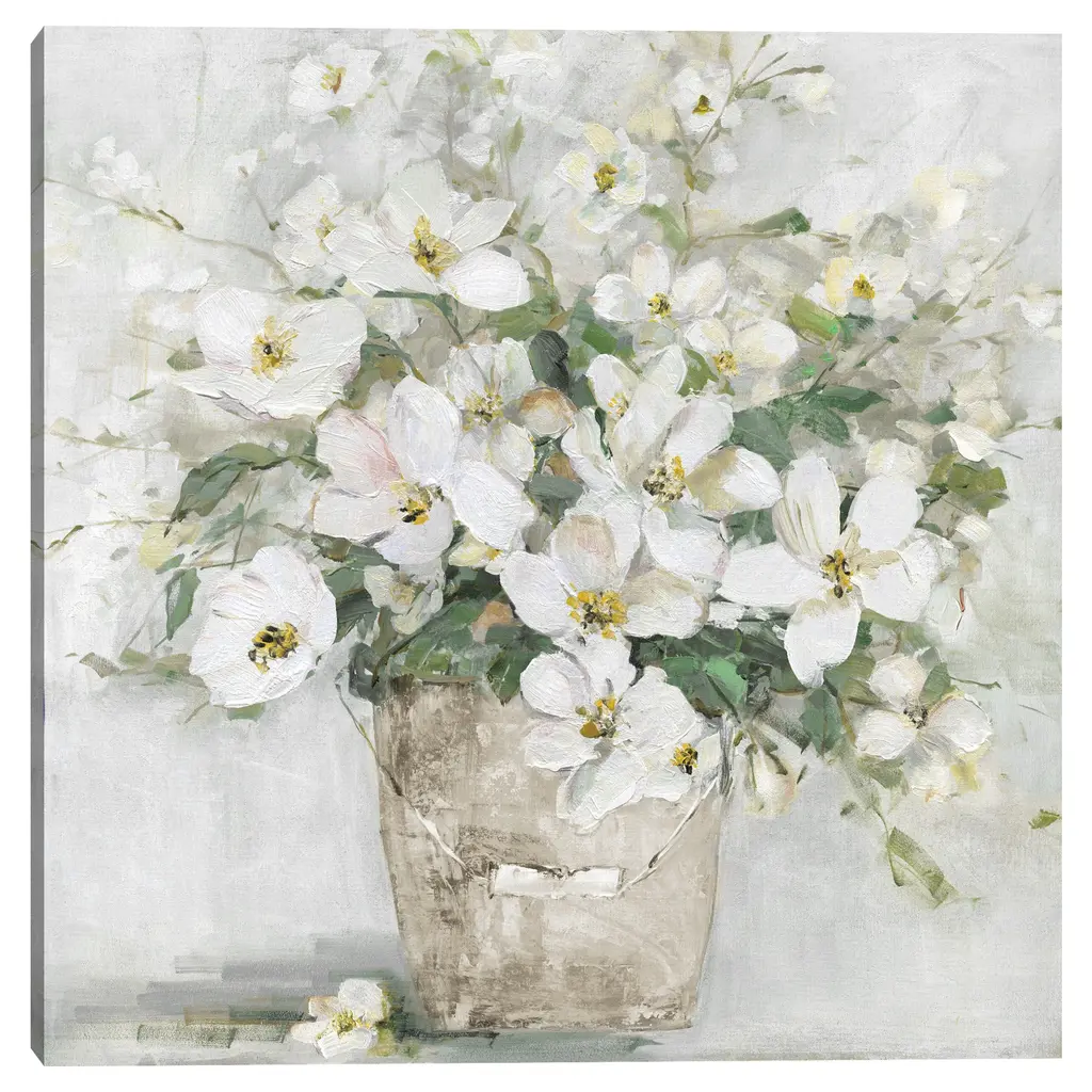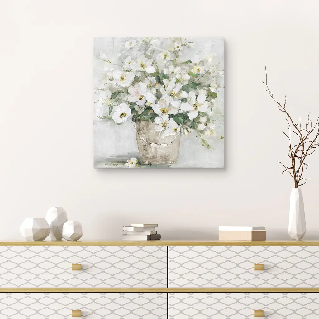 Spring Cottage Blooms II by Sally Swatland Canvas Art Print is produced with printing that covers the entirety of the canvas for a sleek and stylish museum-quality look. Our framed prints are made by expert craftsmen who strive to make each canvas the masterpiece