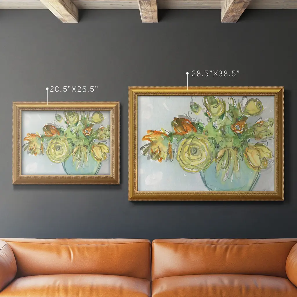 Spring Floral Accent I Premium Framed Canvas- Ready to Hang A Premium Framed Canvas created to last. Framed in distressed wood and available in an array of sizes and colors Featuring a beveled a solid wood stretcher bar, each piece comes ready to hand 3 SIZES AVAILABLE 16''X20'' - Overall Size 18'X27'' - Overall Size 24''x36'' - Overall Size Each piece is made to order. Each piece comes with hanging hardware. Made in the USA Ready to Hang Giclee Paper Print Acrylic Glass Beveled Matt Board