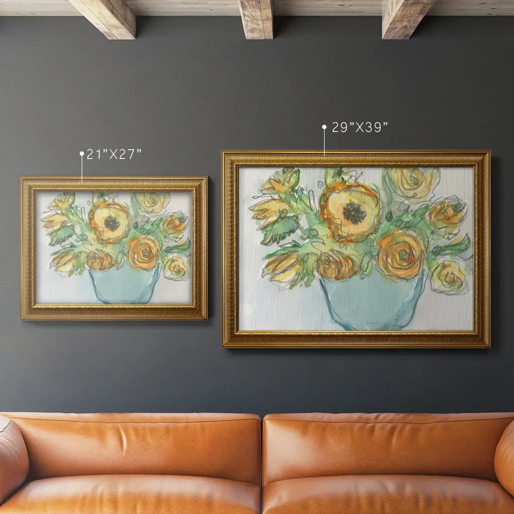 Spring Floral Accent II Premium Framed Canvas- Ready to Hang A Premium Framed Canvas created to last. Framed in distressed wood and available in an array of sizes and colors Featuring a beveled a solid wood stretcher bar, each piece comes ready to hand 3 SIZES AVAILABLE 16''X20'' - Overall Size 18'X27'' - Overall Size 24''x36'' - Overall Size Each piece is made to order. Each piece comes with hanging hardware. Made in the USA Ready to Hang Giclee Paper Print Acrylic Glass Beveled Matt Board