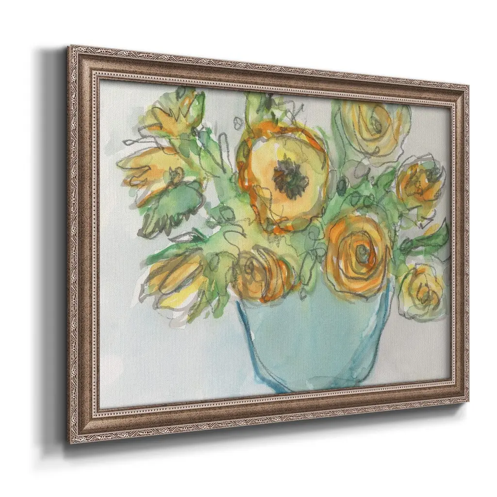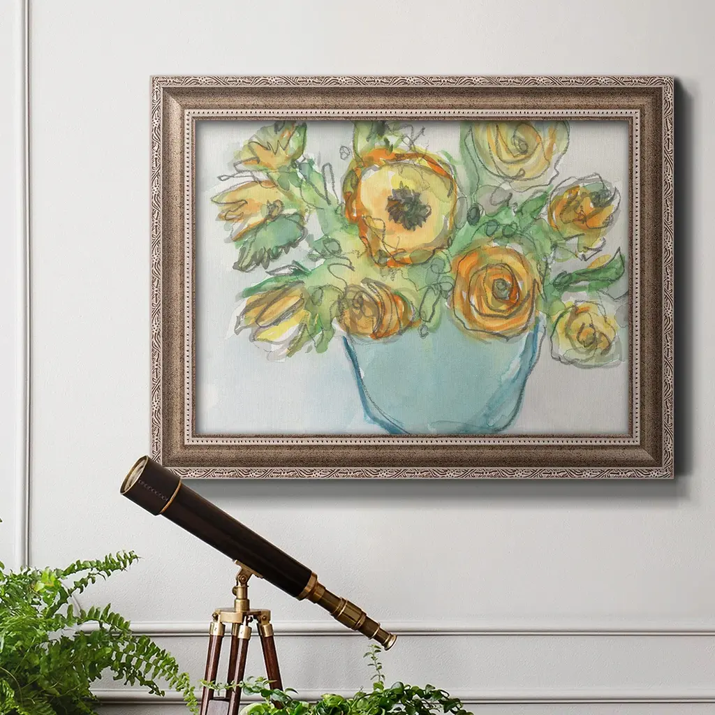 Spring Floral Accent II Premium Framed Canvas- Ready to Hang A Premium Framed Canvas created to last. Framed in distressed wood and available in an array of sizes and colors Featuring a beveled a solid wood stretcher bar, each piece comes ready to hand 3 SIZES AVAILABLE 16''X20'' - Overall Size 18'X27'' - Overall Size 24''x36'' - Overall Size Each piece is made to order. Each piece comes with hanging hardware. Made in the USA Ready to Hang Giclee Paper Print Acrylic Glass Beveled Matt Board