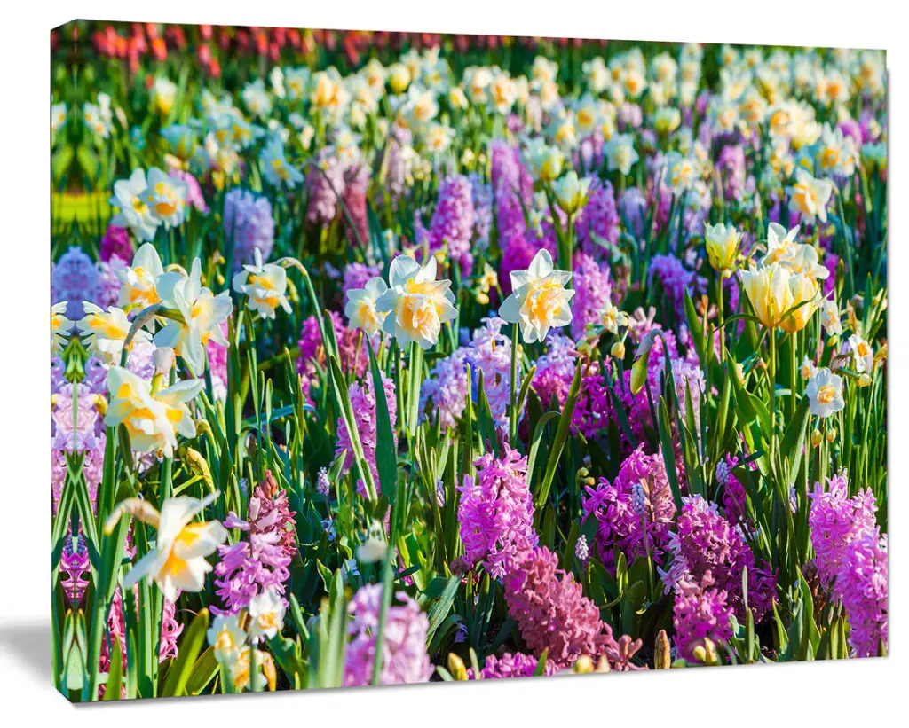 Bring Contemporary Abstraction to your home with this large Circle Metal wall art. This Spring Flowers in Keukenhof Park Metal Artwork makes it the focal point of any room or office. - White Gloss Coating ensures colors are extra vibrant with light reflection.- Aluminum grade Sheet Metal with 1 inch mounting frame on the back giving the illusion that the artwork is floating on the wall..- Mounting Brackets are included along with instructions.- High Quality Digital images are created directly into a glossy aluminum panel producing a stunning and captivating print into the glossy finish of the metal.- Water, Fire and Scratch resistant HD Aluminum panels.- Looks better than any photo paper and guaranteed to last at least 20 years- Easy to clean with a microfiber cloth. Colors are far superior to regular Canvas Art. - Easy to Hang