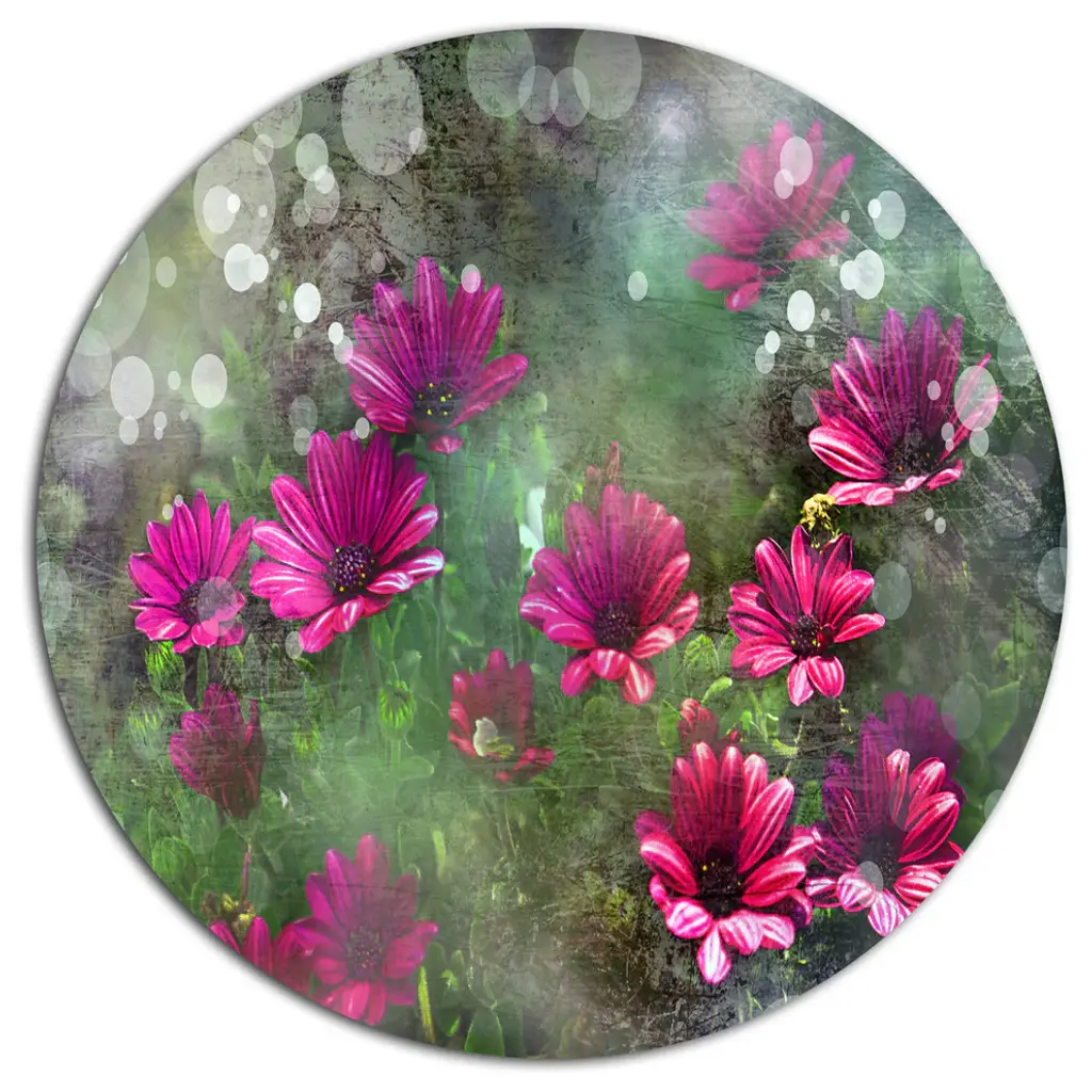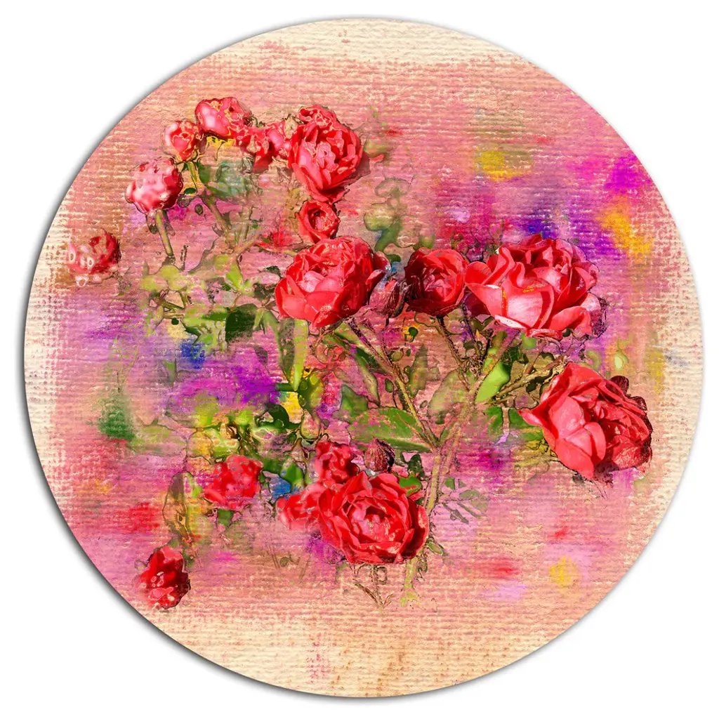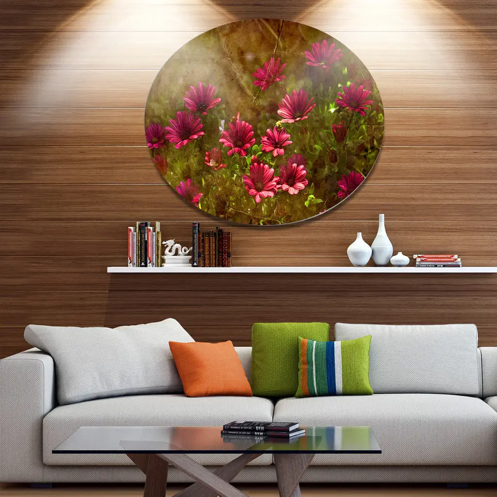 Bring Contemporary Abstraction to your home with this large Circle Metal wall art. This Spring Garden with Little Red Flowers Metal Artwork makes it the focal point of any room or office. - White Gloss Coating ensures colors are extra vibrant with light reflection.- Aluminum grade Sheet Metal with 1 inch mounting frame on the back giving the illusion that the artwork is floating on the wall..- Mounting Brackets are included along with instructions.- High Quality Digital images are created directly into a glossy aluminum panel producing a stunning and captivating print into the glossy finish of the metal.- Water, Fire and Scratch resistant HD Aluminum panels.- Looks better than any photo paper and guaranteed to last at least 20 years- Easy to clean with a microfiber cloth. Colors are far superior to regular Canvas Art. - Easy to Hang