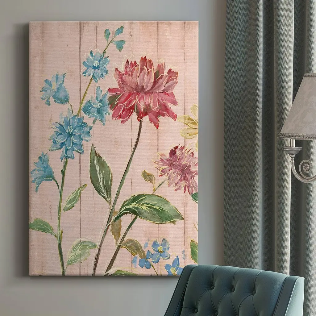 Spring Garden With Little Red Flowers, Floral Disc Metal Wall Art, 11"