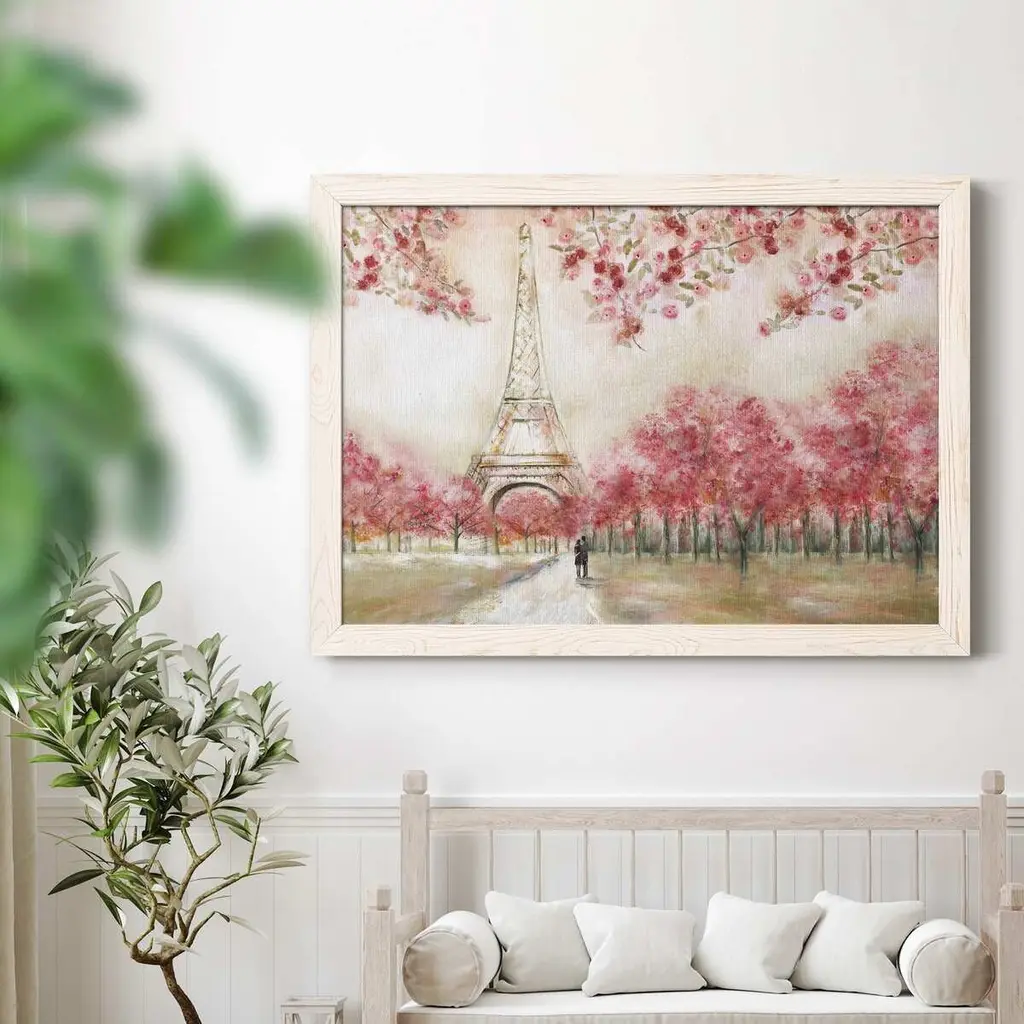 Spring In Paris-Premium Framed Canvas - Ready to Hang Framed in distressed wood and available in an array of sizes and colors Each piece is joined and assembled by hand and comes ready to hang Framed Giclee Canvas READY TO HANG MADE IN THE USA SOLID WOOD FRAME MADE IN USA FADE RESISTANT GICLEE PRINTING on Canvas or Paper