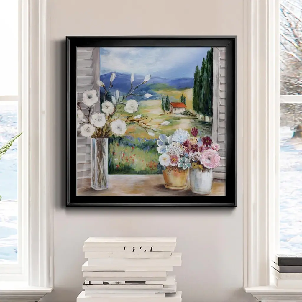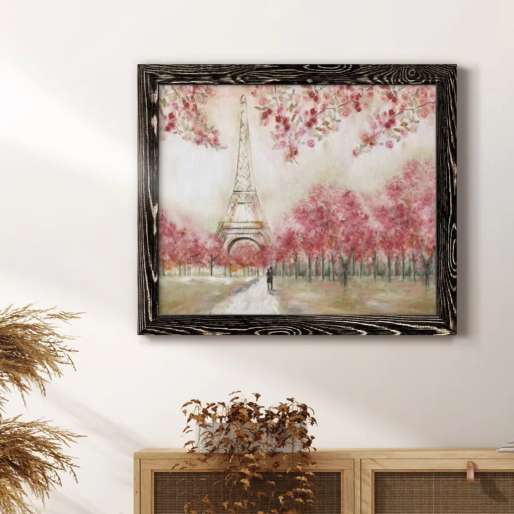 Spring In Paris-Premium Framed Canvas - Ready to Hang Framed in distressed wood and available in an array of sizes and colors Each piece is joined and assembled by hand and comes ready to hang Framed Giclee Canvas READY TO HANG MADE IN THE USA SOLID WOOD FRAME MADE IN USA FADE RESISTANT GICLEE PRINTING on Canvas or Paper