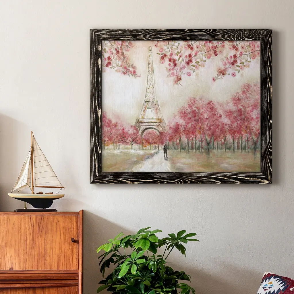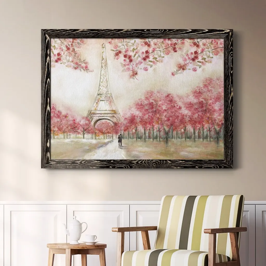 Spring In Paris-Premium Framed Canvas - Ready to Hang Framed in distressed wood and available in an array of sizes and colors Each piece is joined and assembled by hand and comes ready to hang Framed Giclee Canvas READY TO HANG MADE IN THE USA SOLID WOOD FRAME MADE IN USA FADE RESISTANT GICLEE PRINTING on Canvas or Paper