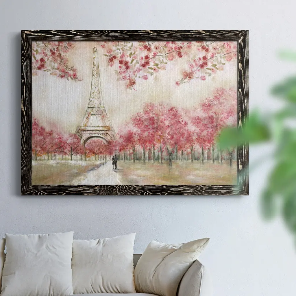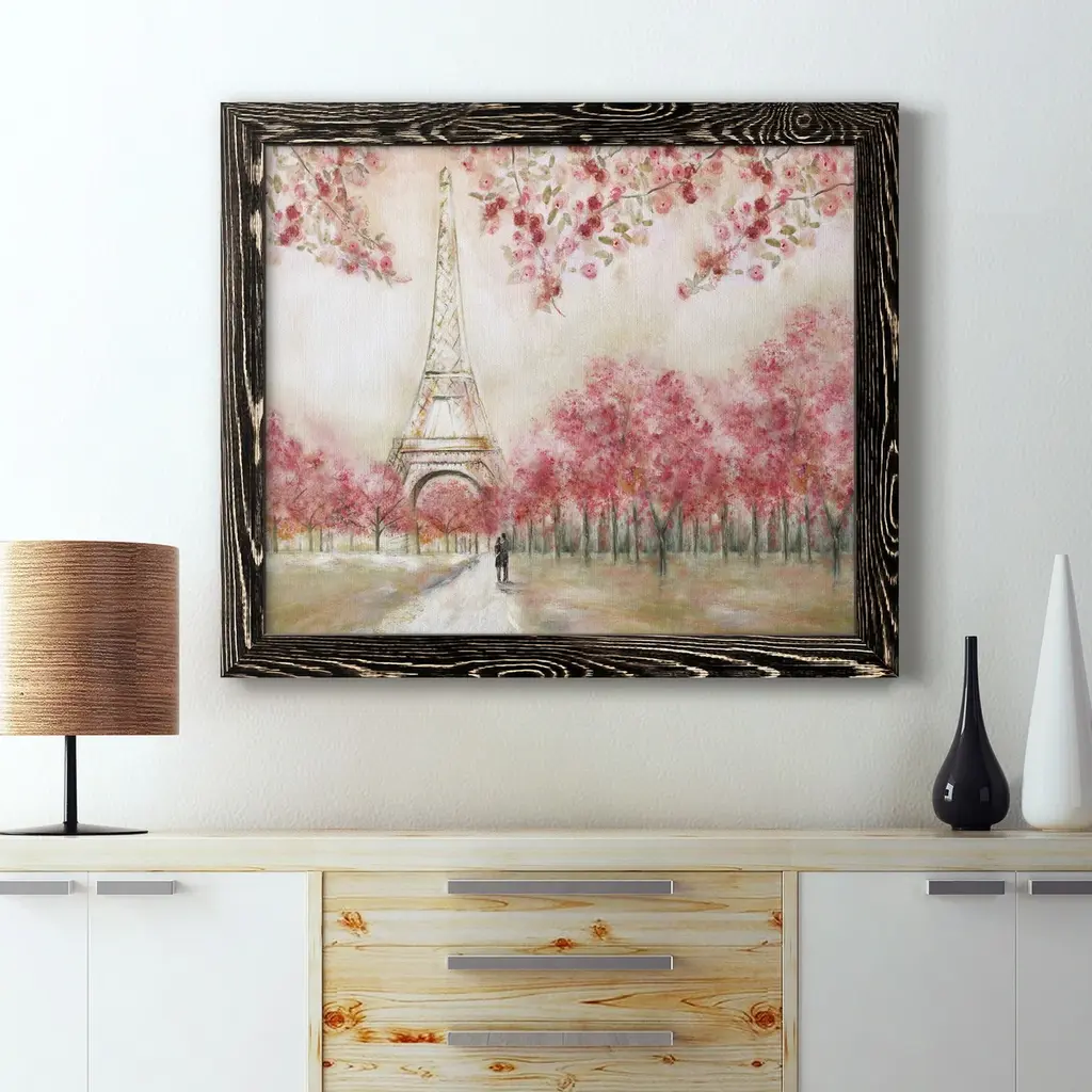 Spring In Paris-Premium Framed Canvas - Ready to Hang Framed in distressed wood and available in an array of sizes and colors Each piece is joined and assembled by hand and comes ready to hang Framed Giclee Canvas READY TO HANG MADE IN THE USA SOLID WOOD FRAME MADE IN USA FADE RESISTANT GICLEE PRINTING on Canvas or Paper