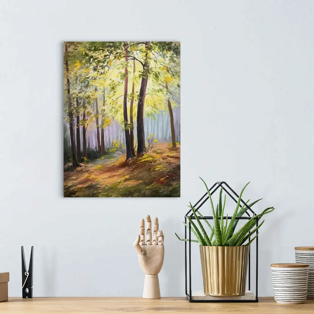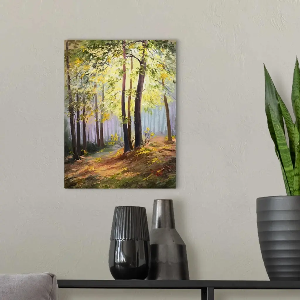 Spring landscape, trees, forest. Originally a colorful oil painting.