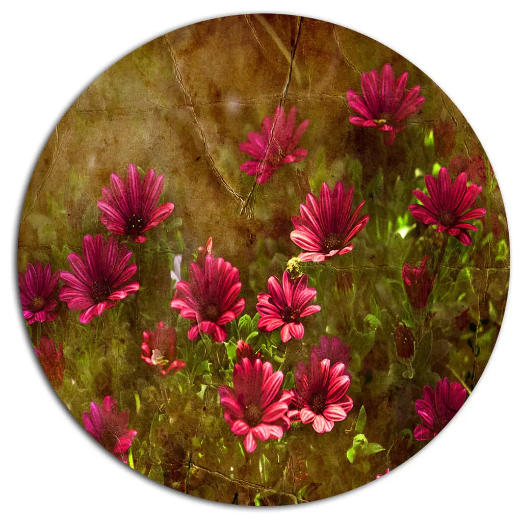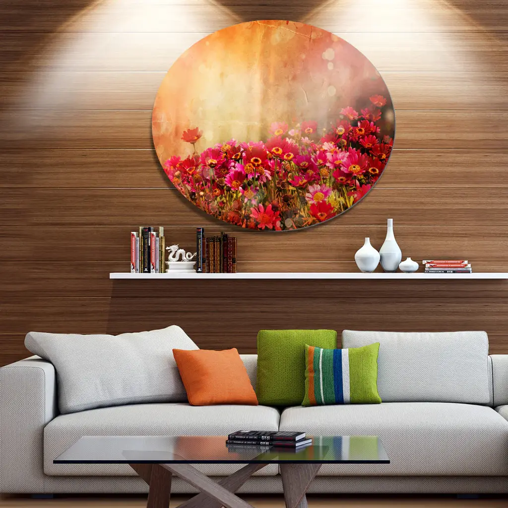 Spring Little Flowers At Sunset, Floral Disc Metal Wall Art, 36"