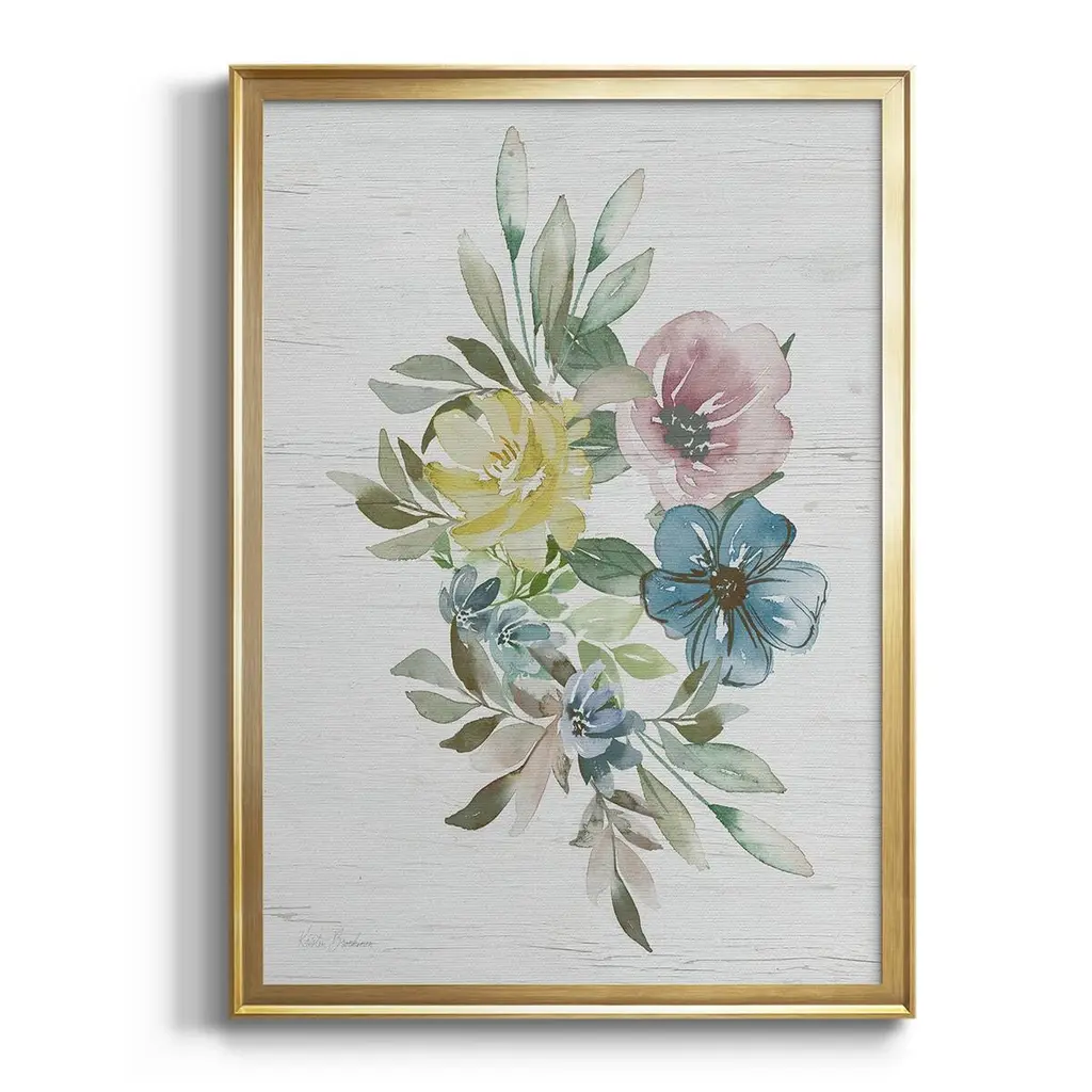 Spring Meadow Arrangement I Premium Framed Print - Ready to Hang A Premium Framed Print created to last. Framed in distressed wood and available in an array of sizes and colors Featuring a beveled a solid wood stretcher bar, each piece comes ready to hand 4 SIZES AVAILABLE 30.5''X42.5'' - Overall Size 26.5'X36.5'' - Overall Size 22.5''x30.5'' - Overall Size 18.5''x24.5'' - Overall Size Each piece is made to order. Each piece comes with hanging hardware. Made in the USA Ready to Hang