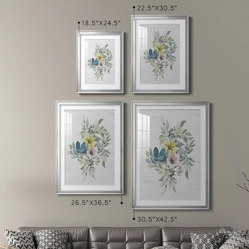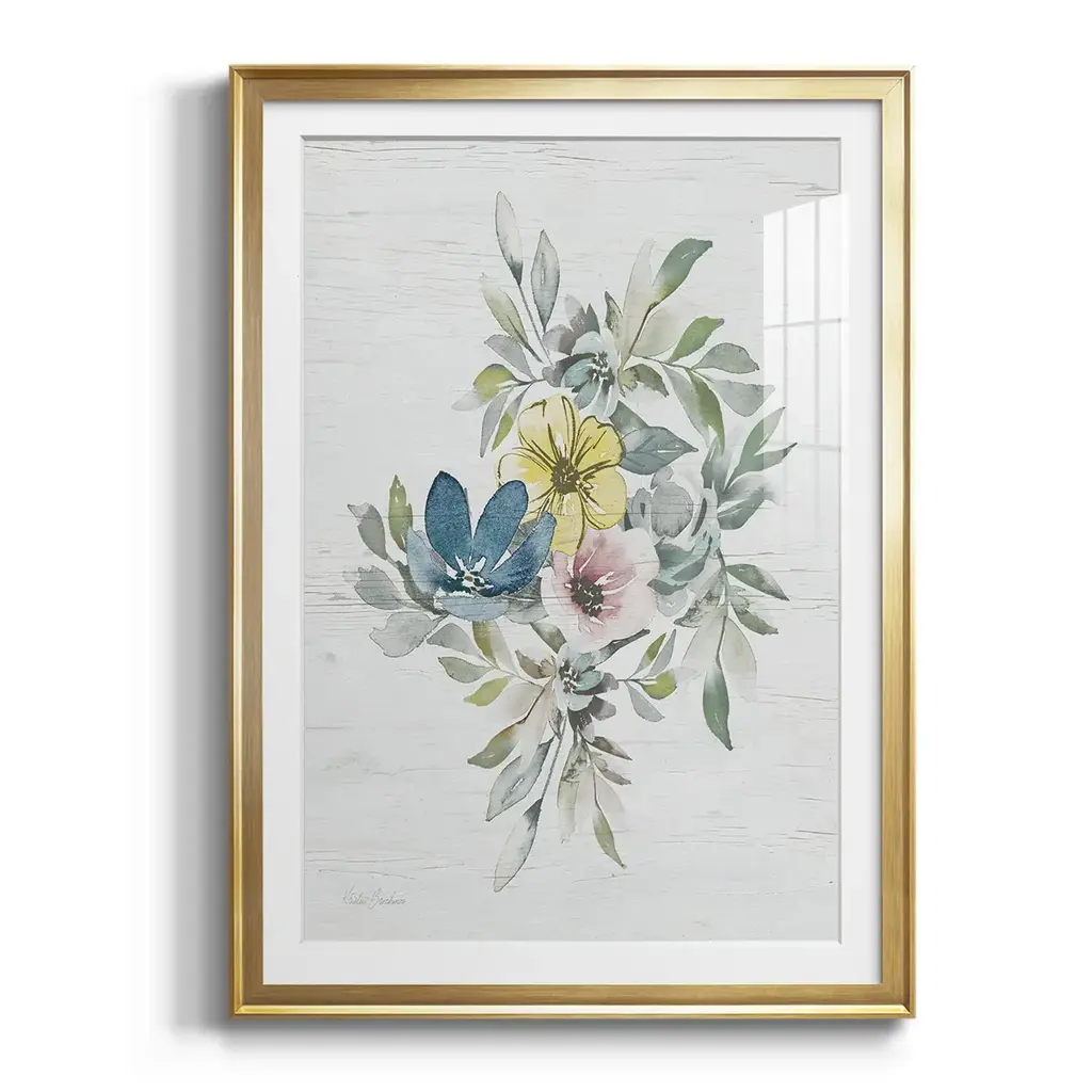 Spring Meadow Arrangement II Premium Framed Print - Ready to Hang A Premium Framed Print created to last. Framed in distressed wood and available in an array of sizes and colors Featuring a beveled a solid wood stretcher bar, each piece comes ready to hand 4 SIZES AVAILABLE 30.5''X42.5'' - Overall Size 26.5'X36.5'' - Overall Size 22.5''x30.5'' - Overall Size 18.5''x24.5'' - Overall Size Each piece is made to order. Each piece comes with hanging hardware. Made in the USA Ready to Hang Giclee Paper Print Acrylic Glass Beveled Matt Board