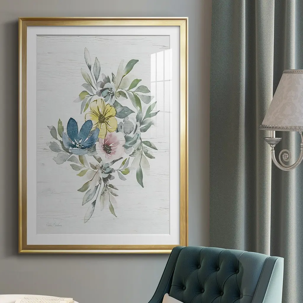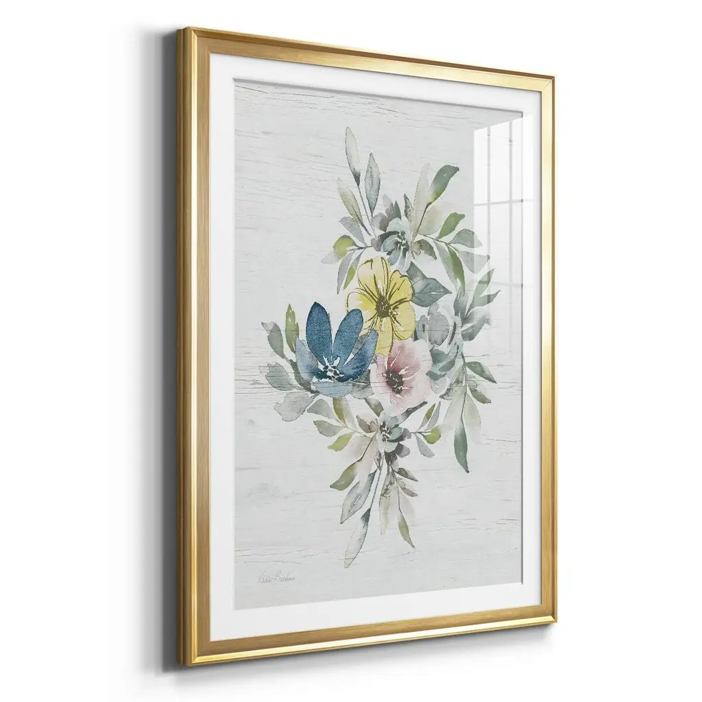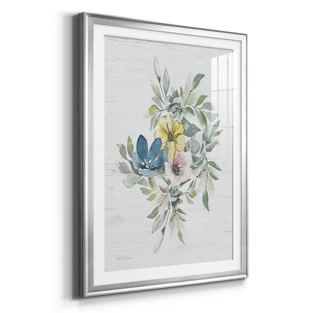 Spring Meadow Arrangement II Premium Framed Print - Ready to Hang A Premium Framed Print created to last. Framed in distressed wood and available in an array of sizes and colors Featuring a beveled a solid wood stretcher bar, each piece comes ready to hand 4 SIZES AVAILABLE 30.5''X42.5'' - Overall Size 26.5'X36.5'' - Overall Size 22.5''x30.5'' - Overall Size 18.5''x24.5'' - Overall Size Each piece is made to order. Each piece comes with hanging hardware. Made in the USA Ready to Hang Giclee Paper Print Acrylic Glass Beveled Matt Board