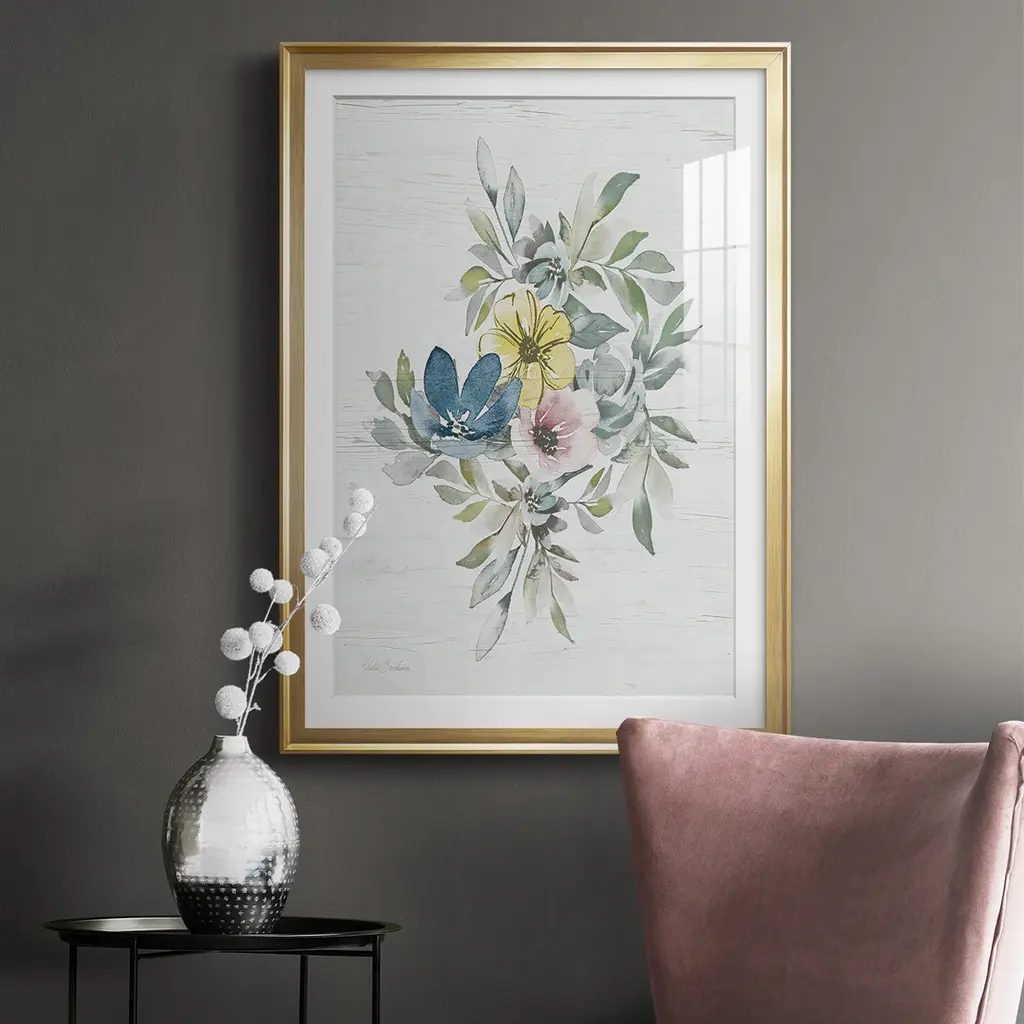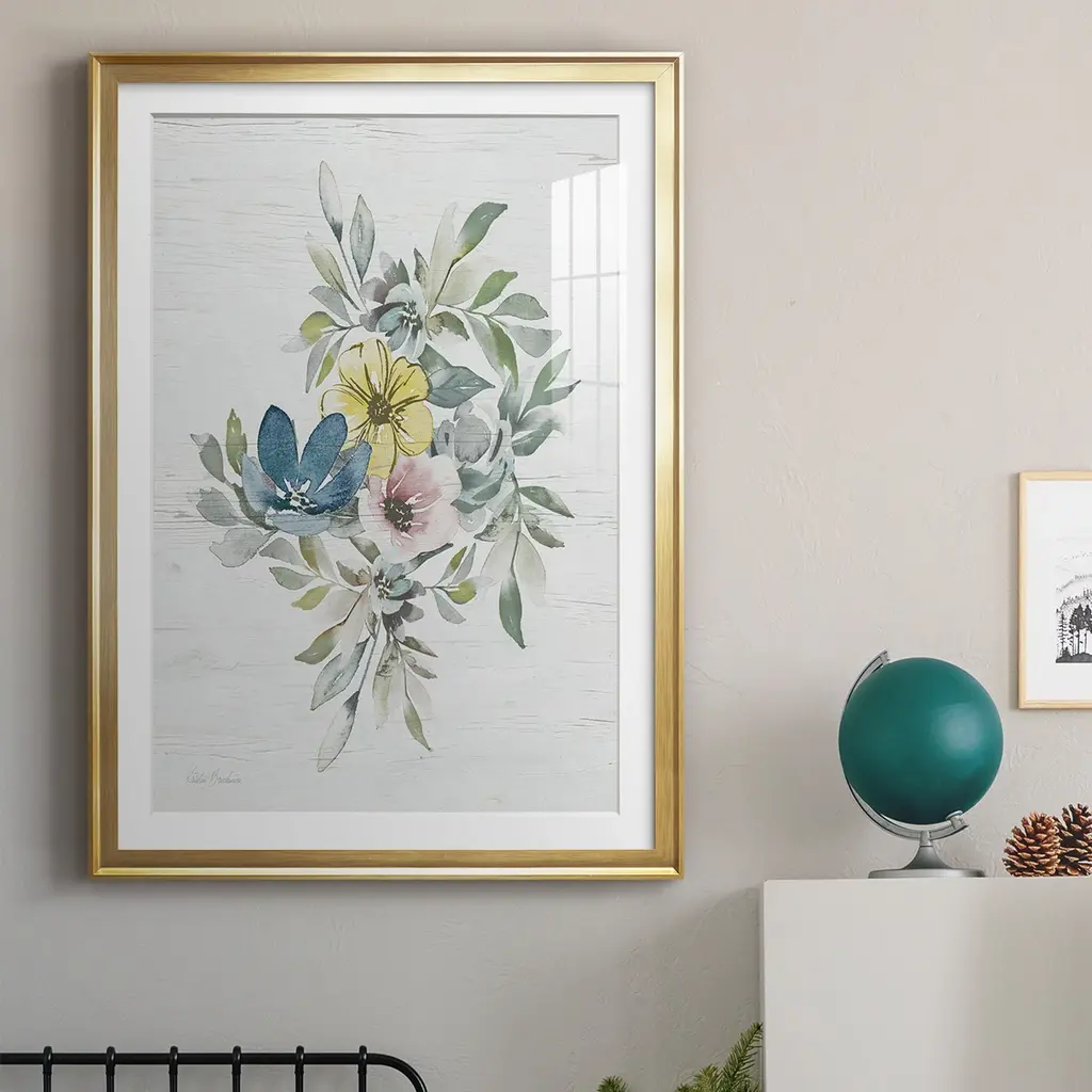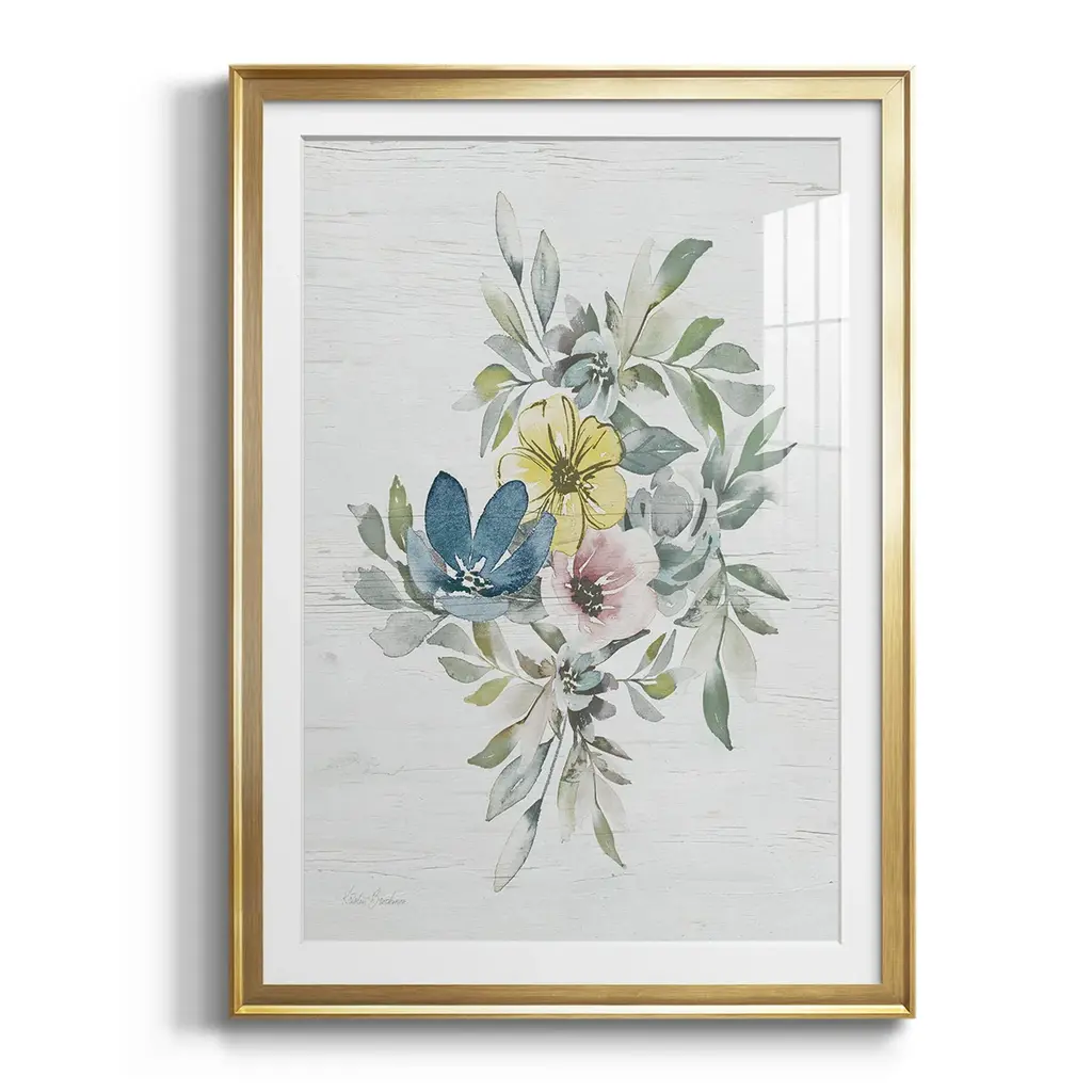 Spring Meadow Arrangement II Premium Framed Print - Ready to Hang A Premium Framed Print created to last. Framed in distressed wood and available in an array of sizes and colors Featuring a beveled a solid wood stretcher bar, each piece comes ready to hand 4 SIZES AVAILABLE 30.5''X42.5'' - Overall Size 26.5'X36.5'' - Overall Size 22.5''x30.5'' - Overall Size 18.5''x24.5'' - Overall Size Each piece is made to order. Each piece comes with hanging hardware. Made in the USA Ready to Hang Giclee Paper Print Acrylic Glass Beveled Matt Board