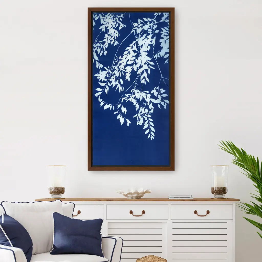 This striking artwork captures a moment of suspended stillness, where feathery leaves and winding stems float across a velvet-like navy canvas. Its minimalist composition and calming tones make it an ideal statement piece for lovers of modern nature-inspired art. Our Gallery Wrap Canvas Prints are proudly assembled with high quality materials in California, USA. Each piece is printed on a thick, archival grade canvas using Giclee technology. It is then hand-stretched by our experienced artisans over solid wood bars, which will not warp over time. The final product is a piece personally crafted for you to confidently display on your wall. Care and Assembly: Ensure that the location of your piece has little to no exposure to heat, sunlight, and moisture. Wipe clean, only if needed. Each piece includes hanging hardware to hang on your wall vertically.
