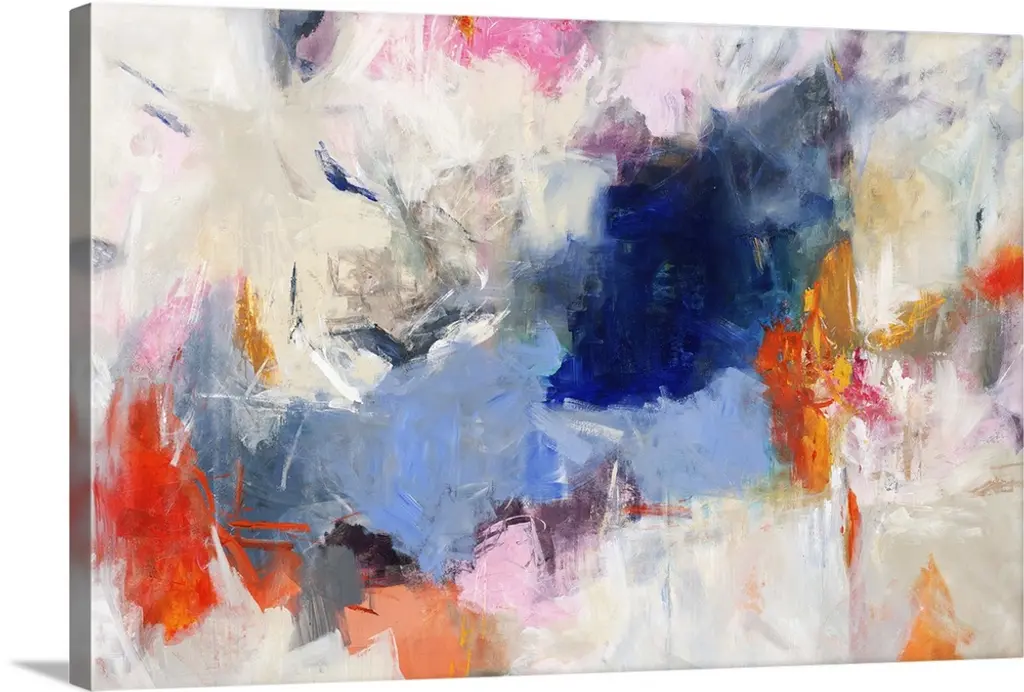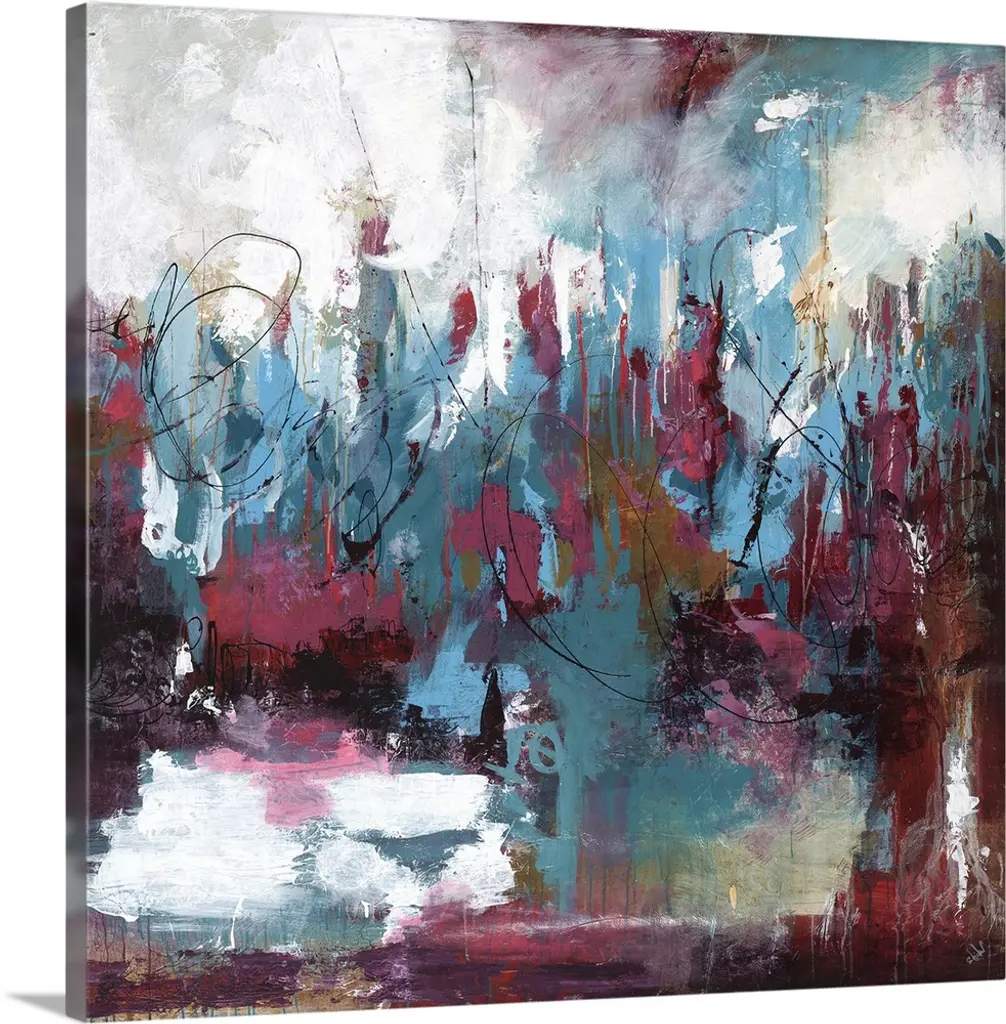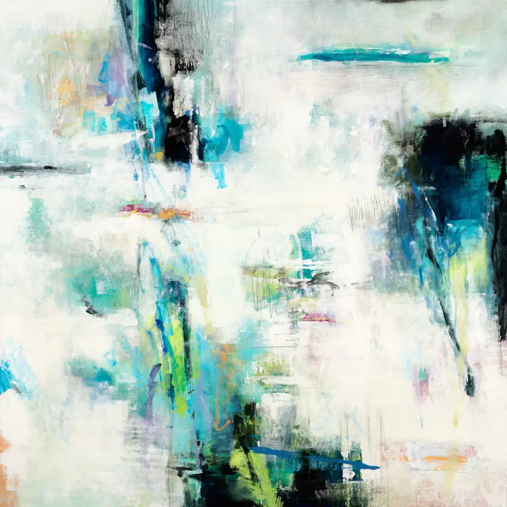 Abstract and expressionist art are splendidly synthesized in this painting, a singular piece that symbolizes a new birth with its vibrant hues and dynamic brushstrokes. Evocative of the triumph of flowers blossoming during springtime, the colorful brushstrokes stand out from the darkness delivering an immediate and inspiring sense of lively elegance. The techniques combine acrylic colors, ink, and tissue paper glued onto the canvas.