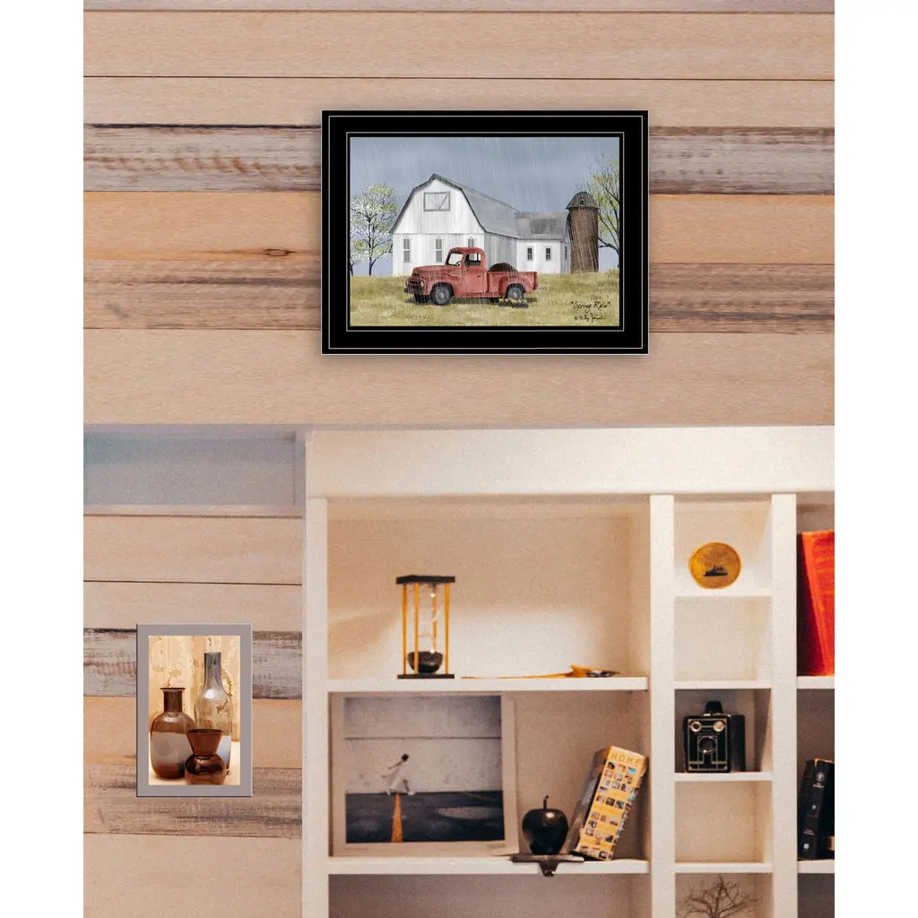 This spring rain 3 black framed print wall art will add a beautiful decorative accent to your decor. This print is a visual artistic expression that allows you to decorate your space in style. Reproduced for you on wood, this hanging decorative accent will be a trendy and fashionable way to dress your walls in a rustic and modern farmhouse vibe. Hang on your wall to add some up to date fashion and decoration. Utilize this opportunity to create a focal point in the room with this fabulous wall decor option. 15" H x 19" W x 1" D