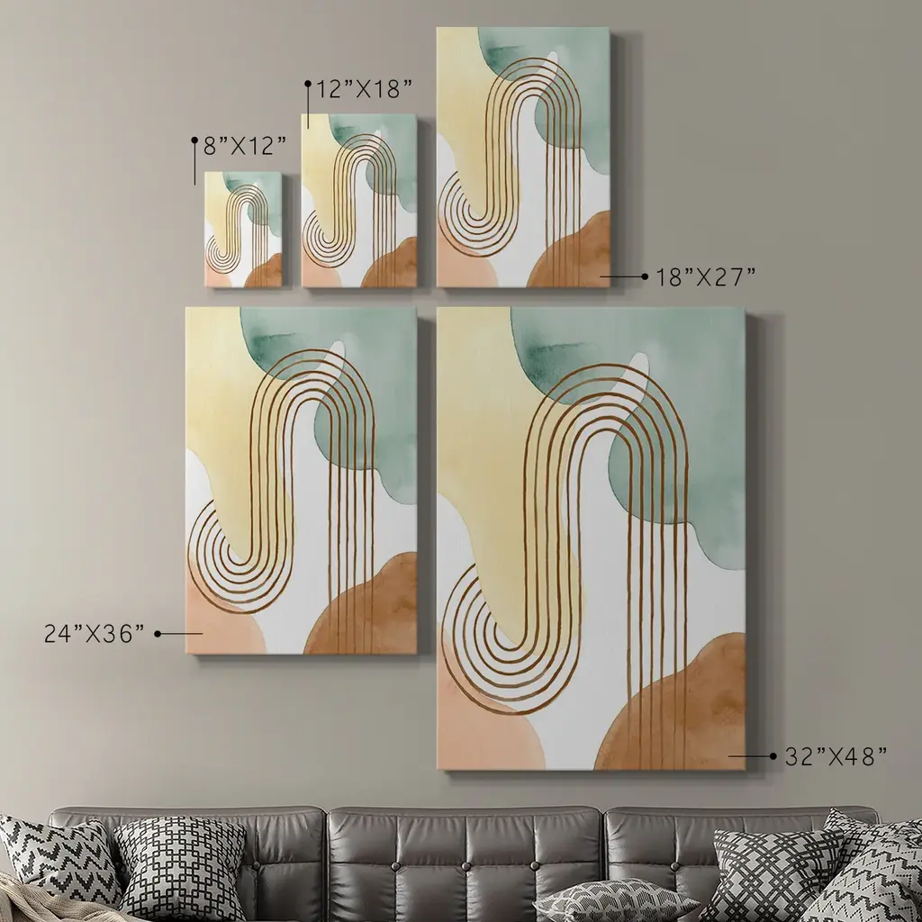 Spring Shapes I Premium Gallery Wrapped Canvas - Ready to Hang A premium hang stretched gallery wrapped canvas print created to last. Featuring a beveled a solid wood stretcher bar, each piece comes ready to hang 6 SIZES AVAILABLE 8''X12'' - Overall Size 12'X18'' - Overall Size 18''x27'' - Overall Size 24''x36'' - Overall Size 32''x48'' - Overall Size 40"x60" - Overall Size Each piece is made to order. Built to Last Each piece comes ready to hang Solid wood stretcher Fade and Water resistant Made domestically