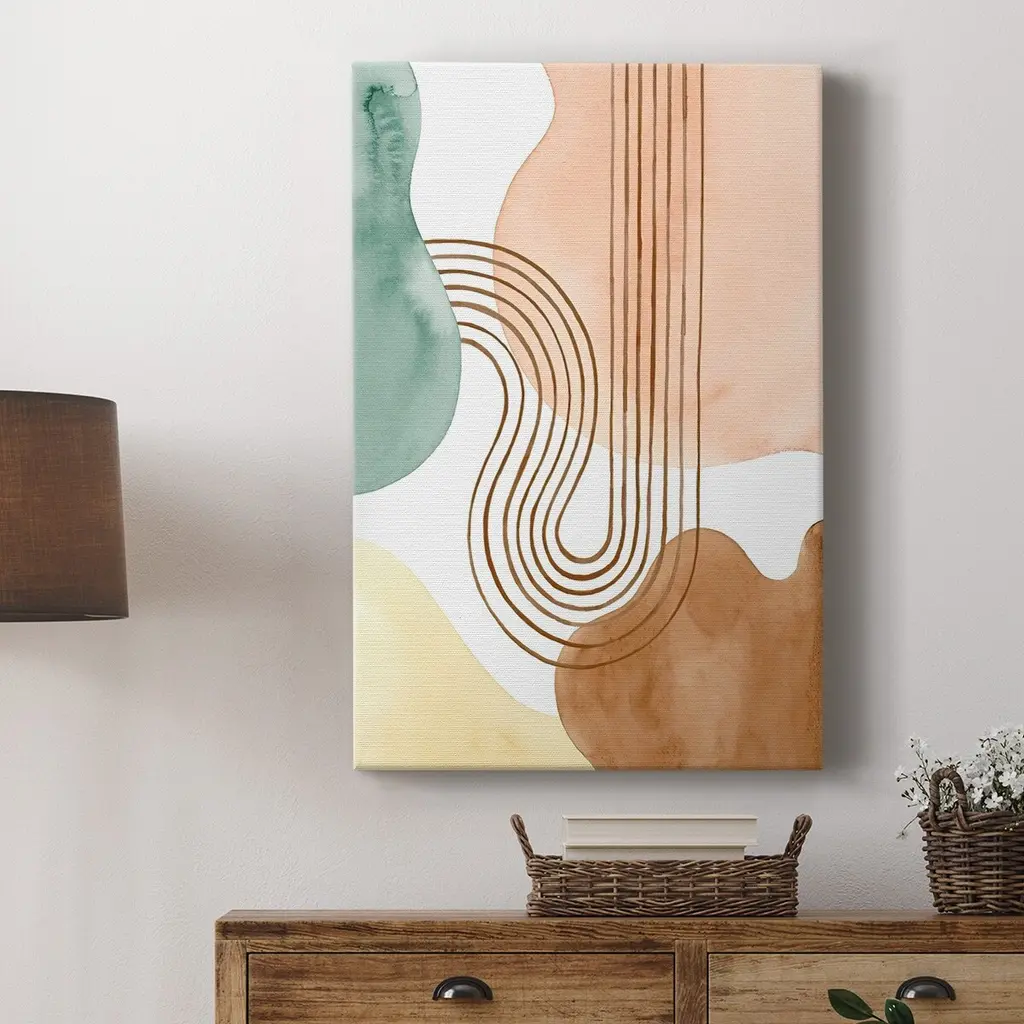 Spring Shapes II Premium Gallery Wrapped Canvas - Ready to Hang A premium hang stretched gallery wrapped canvas print created to last. Featuring a beveled a solid wood stretcher bar, each piece comes ready to hang 6 SIZES AVAILABLE 8''X12'' - Overall Size 12'X18'' - Overall Size 18''x27'' - Overall Size 24''x36'' - Overall Size 32''x48'' - Overall Size 40"x60" - Overall Size Each piece is made to order. Built to Last Each piece comes ready to hang Solid wood stretcher Fade and Water resistant Made domestically