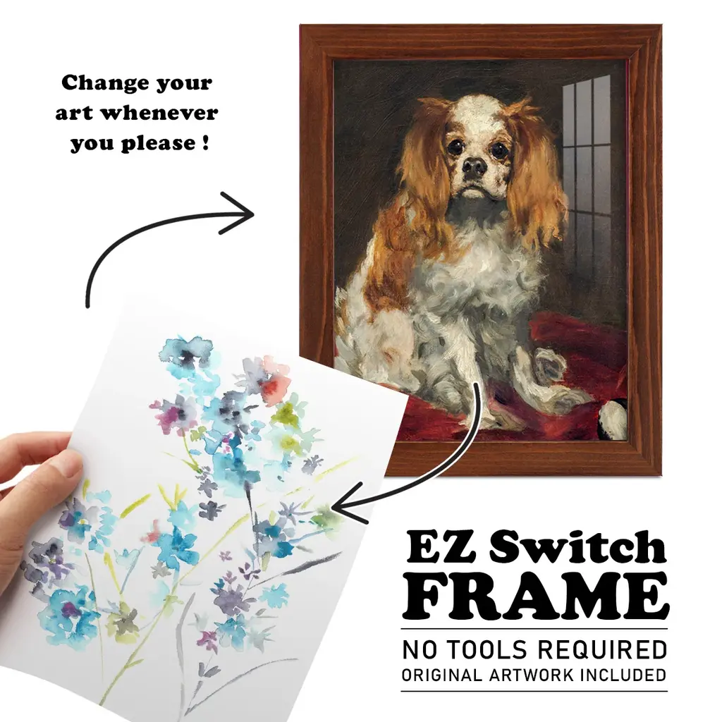 Spring Soiree II -EZ SWITCH Framed Print w/glass-Cherry Red A delightful, framed print. Featuring a solid wood frame with real wood glass. This premium print is giclee quality. In addition, every frame features a removable back and table top stand. This allows you to change your art in the future or to just stand the art on a table for a new look. We are sure you'll enjoy our new series of EZ SWITCH Framed Art. Solid Wood Frame Real Glass Removable / Replaceable Art Built in Tabletop Stand Sizes range from 4x6 up to 12x15 - buy just one or pair them up as sets as you see fit.