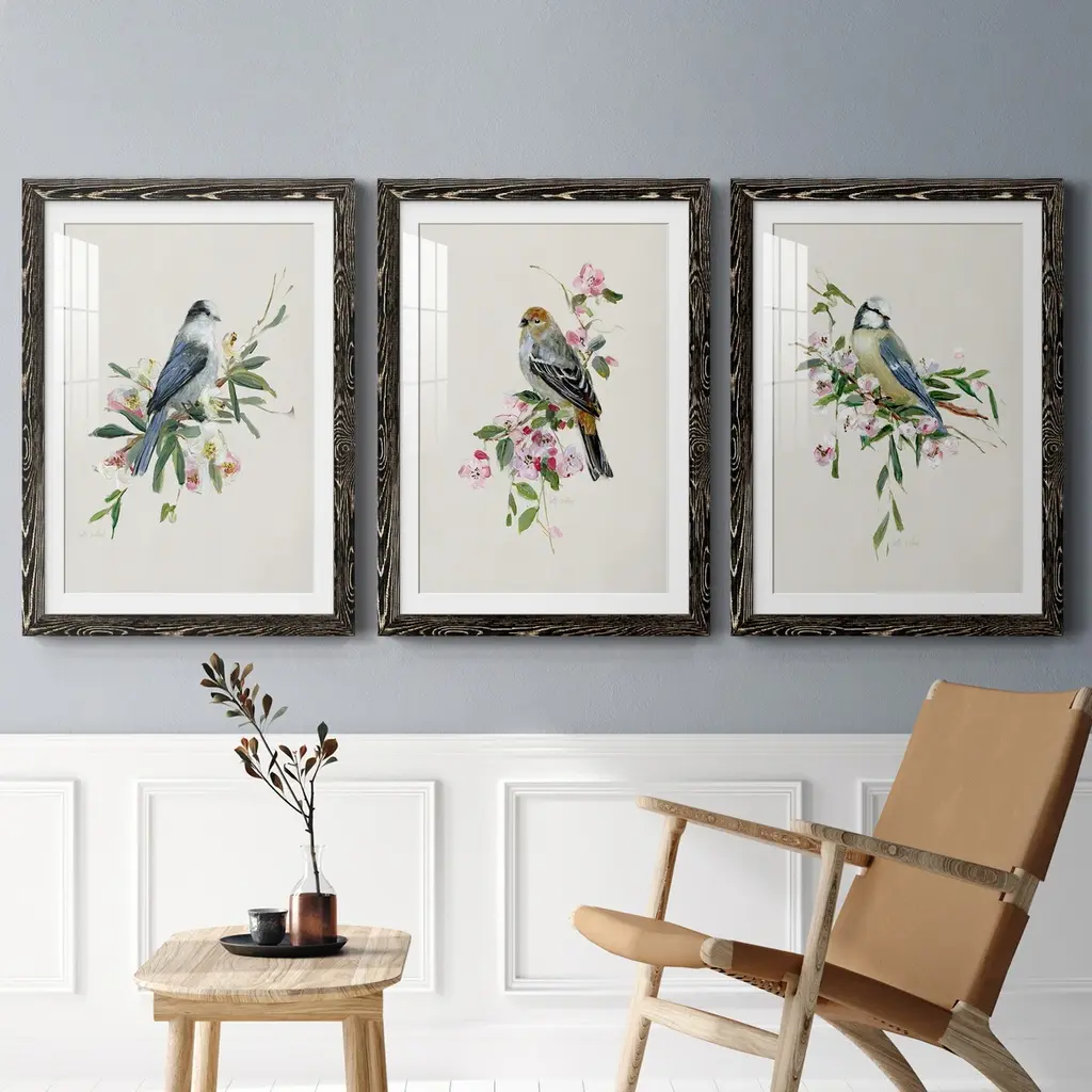 Spring Song Blue Bird-Premium Framed Print - Ready to Hang Framed in distressed wood and available in an array of sizes and colors Each piece is joined and assembled by hand and comes ready to hang 2 INCH BEVELED MATTE BOARD PLEXIGLASS COVERING READY TO HANG MADE IN THE USA SOLID WOOD FRAME MADE IN USA FADE RESISTANT GICLEE PRINTING on Paper
