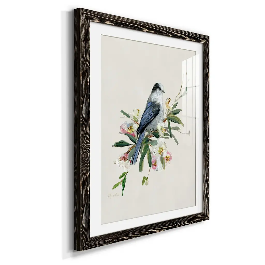Spring Song Blue Bird-Premium Framed Print - Ready to Hang Framed in distressed wood and available in an array of sizes and colors Each piece is joined and assembled by hand and comes ready to hang 2 INCH BEVELED MATTE BOARD PLEXIGLASS COVERING READY TO HANG MADE IN THE USA SOLID WOOD FRAME MADE IN USA FADE RESISTANT GICLEE PRINTING on Paper