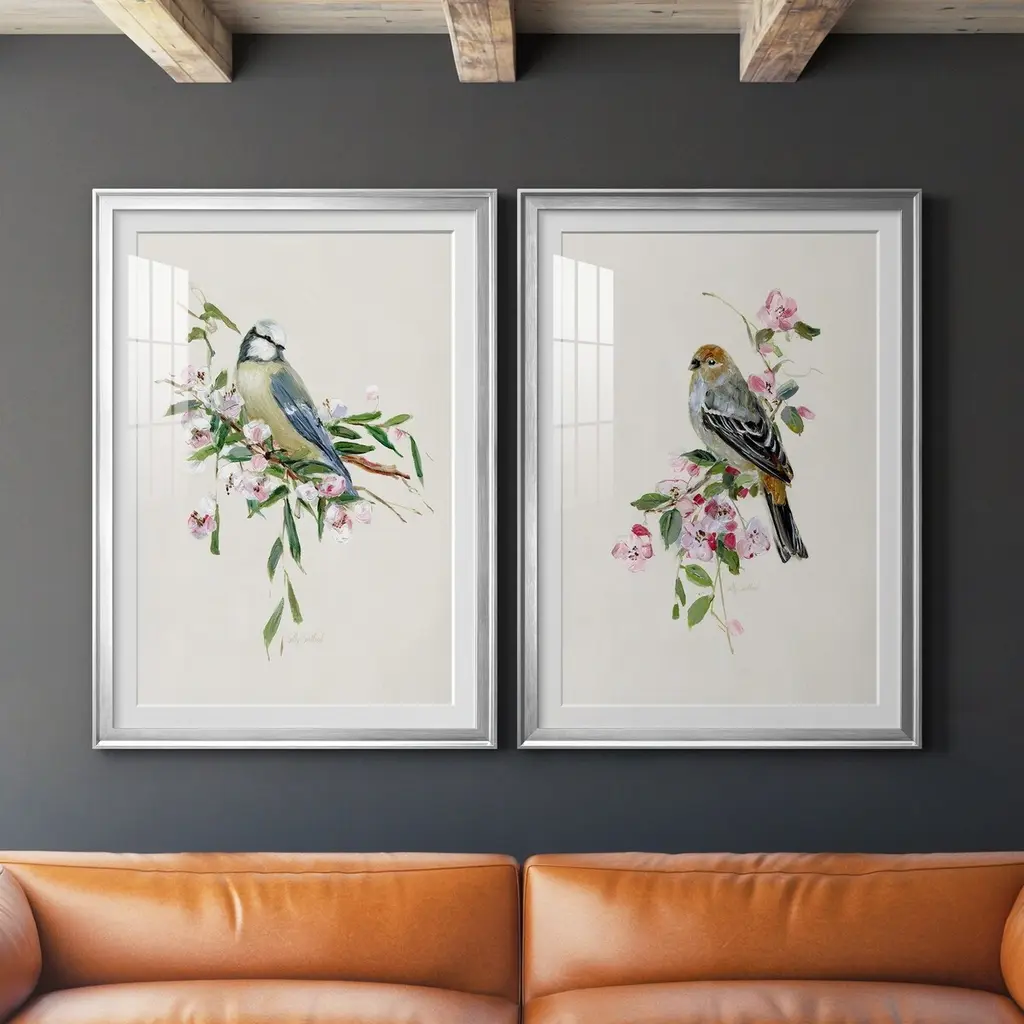 Spring Song Blue Bird Premium Framed Print - Ready to Hang A Premium Framed Print created to last. Framed in distressed wood and available in an array of sizes and colors Featuring a beveled a solid wood stretcher bar, each piece comes ready to hand 4 SIZES AVAILABLE 30.5''X42.5'' - Overall Size 26.5'X36.5'' - Overall Size 22''x30'' - Overall Size 18''x24'' - Overall Size Each piece is made to order. Each piece comes with hanging hardware. Made in the USA Ready to Hang Giclee Paper Print Acrylic Glass Beveled Matt Board