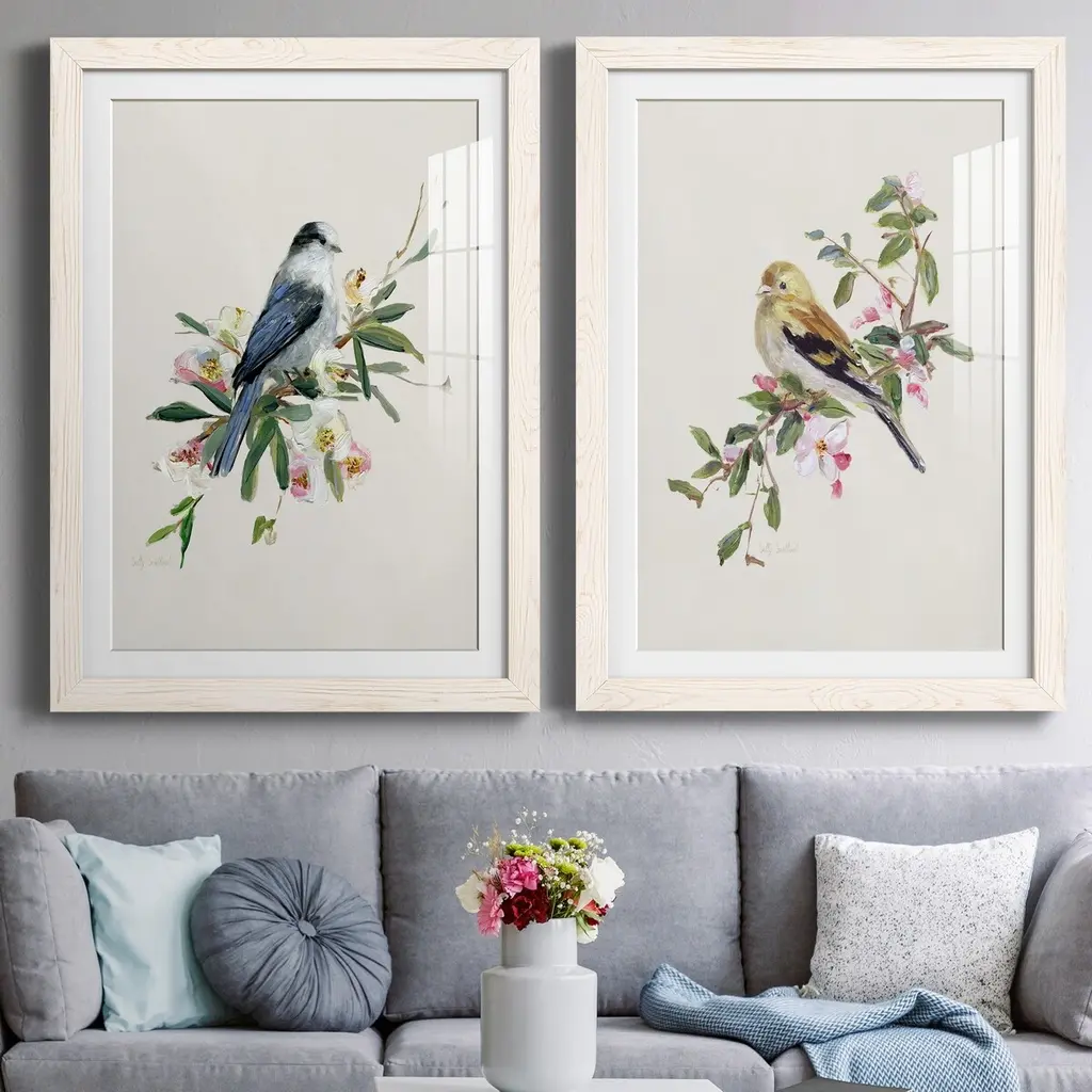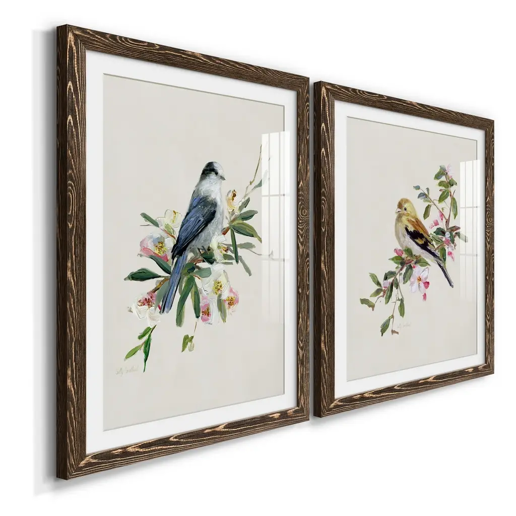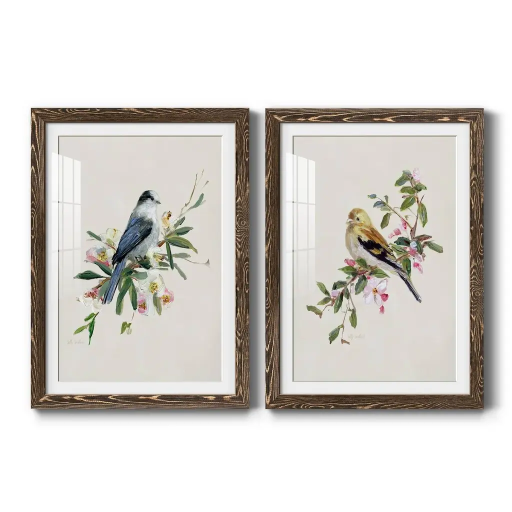 Spring Song Gray Jay-Premium Framed Print - Ready to Hang Framed in distressed wood and available in an array of sizes and colors Each piece is joined and assembled by hand and comes ready to hang 2 INCH BEVELED MATTE BOARD PLEXIGLASS COVERING READY TO HANG MADE IN THE USA SOLID WOOD FRAME MADE IN USA FADE RESISTANT GICLEE PRINTING on Canvas or Paper