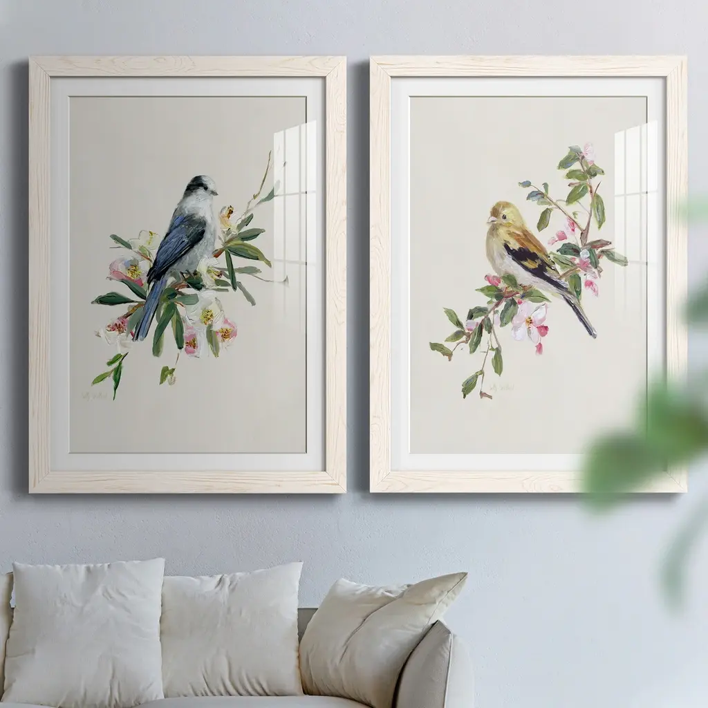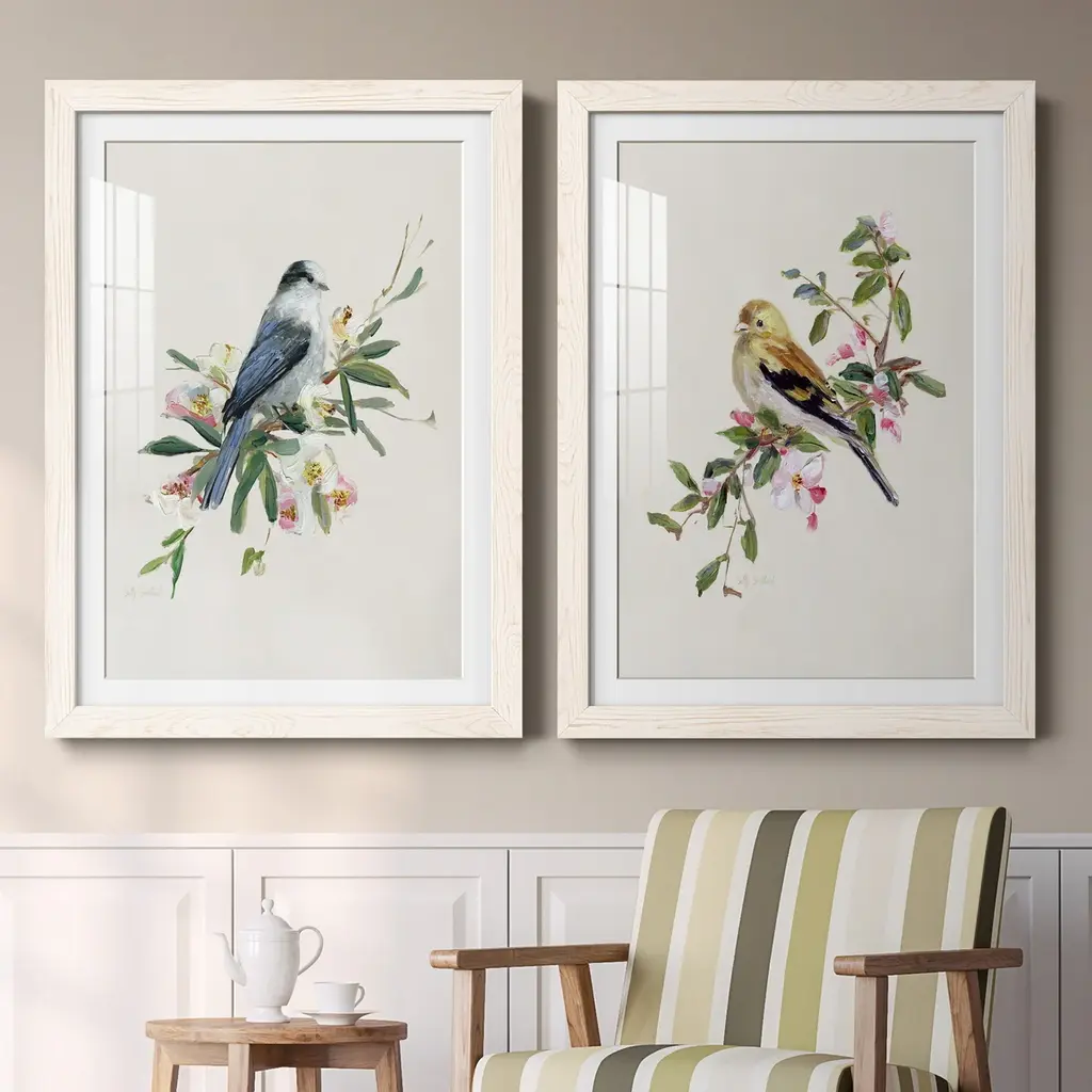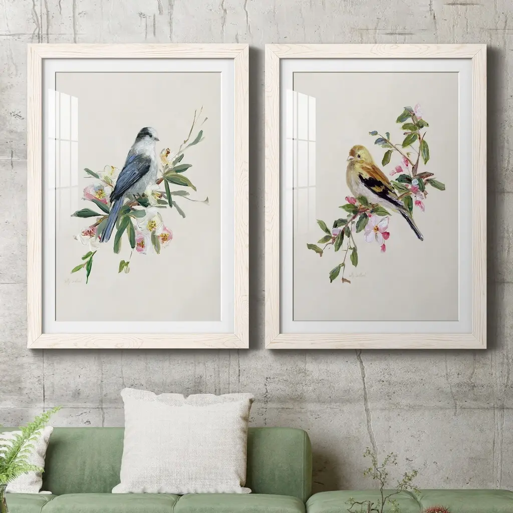 Spring Song Gray Jay-Premium Framed Print - Ready to Hang Framed in distressed wood and available in an array of sizes and colors Each piece is joined and assembled by hand and comes ready to hang 2 INCH BEVELED MATTE BOARD PLEXIGLASS COVERING READY TO HANG MADE IN THE USA SOLID WOOD FRAME MADE IN USA FADE RESISTANT GICLEE PRINTING on Canvas or Paper
