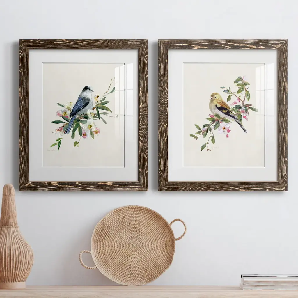 Spring Song Gray Jay-Premium Framed Print - Ready to Hang Framed in distressed wood and available in an array of sizes and colors Each piece is joined and assembled by hand and comes ready to hang 2 INCH BEVELED MATTE BOARD PLEXIGLASS COVERING READY TO HANG MADE IN THE USA SOLID WOOD FRAME MADE IN USA FADE RESISTANT GICLEE PRINTING on Canvas or Paper