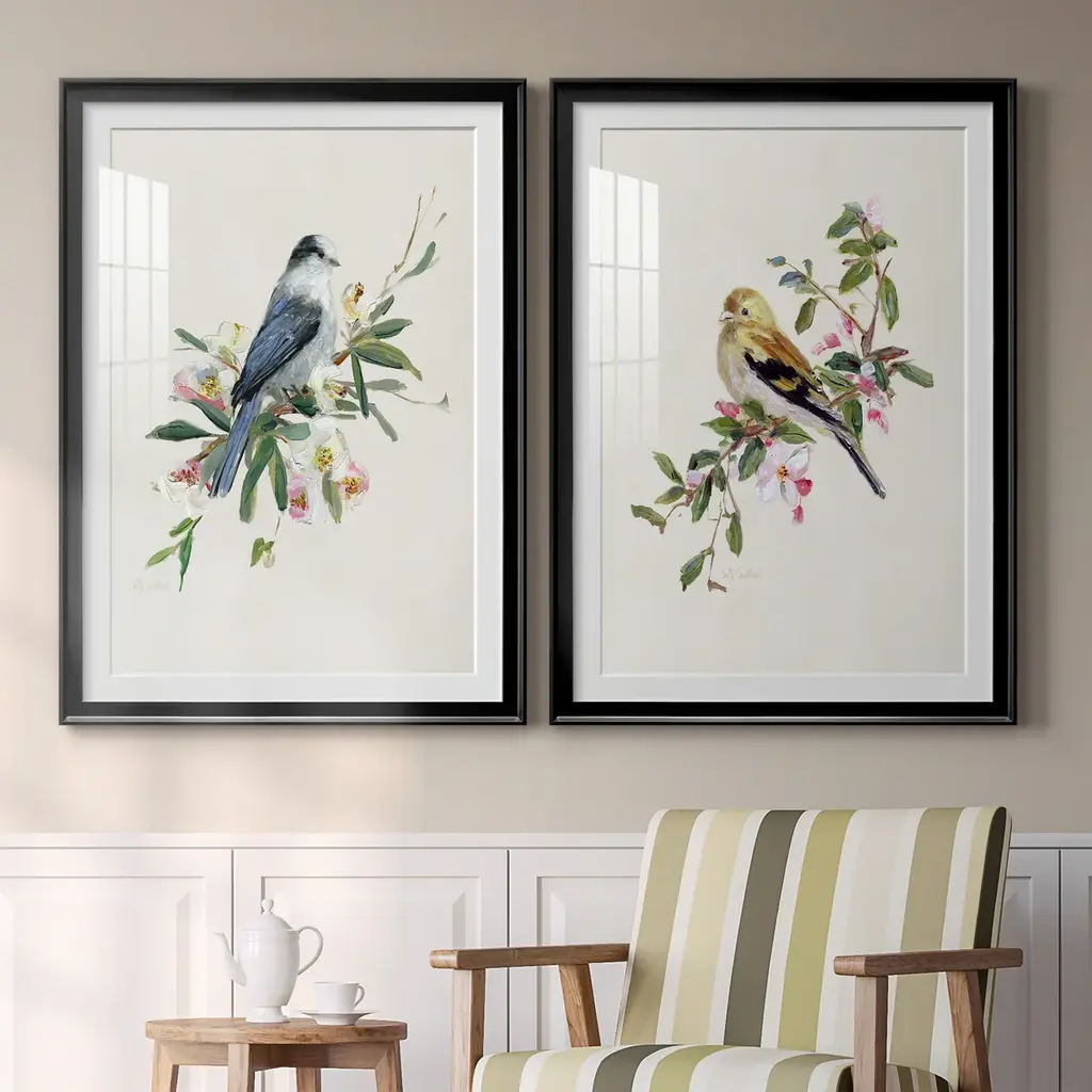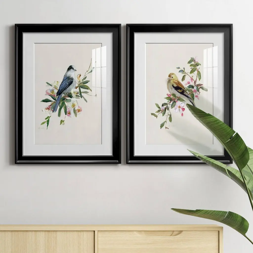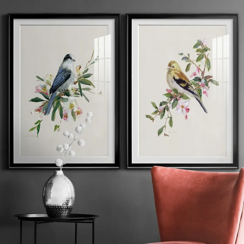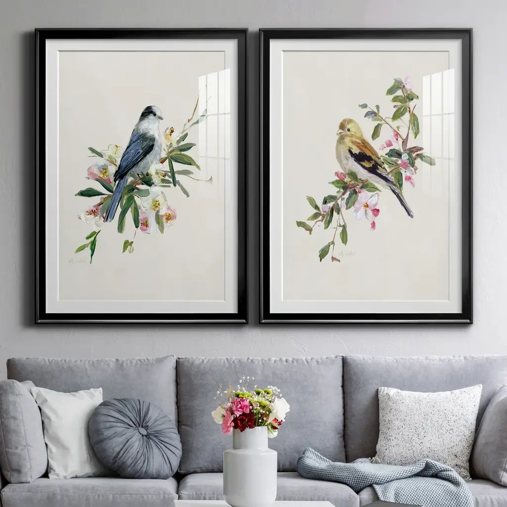 Spring Song Gray Jay Premium Framed Print - Ready to Hang A Premium Framed Print created to last. Framed in distressed wood and available in an array of sizes and colors Featuring a beveled a solid wood stretcher bar, each piece comes ready to hand 4 SIZES AVAILABLE 30.5''X42.5'' - Overall Size 26.5'X36.5'' - Overall Size 22''x30'' - Overall Size 18''x24'' - Overall Size Each piece is made to order. Each piece comes with hanging hardware. Made in the USA Ready to Hang Giclee Paper Print Acrylic Glass Beveled Matt Board
