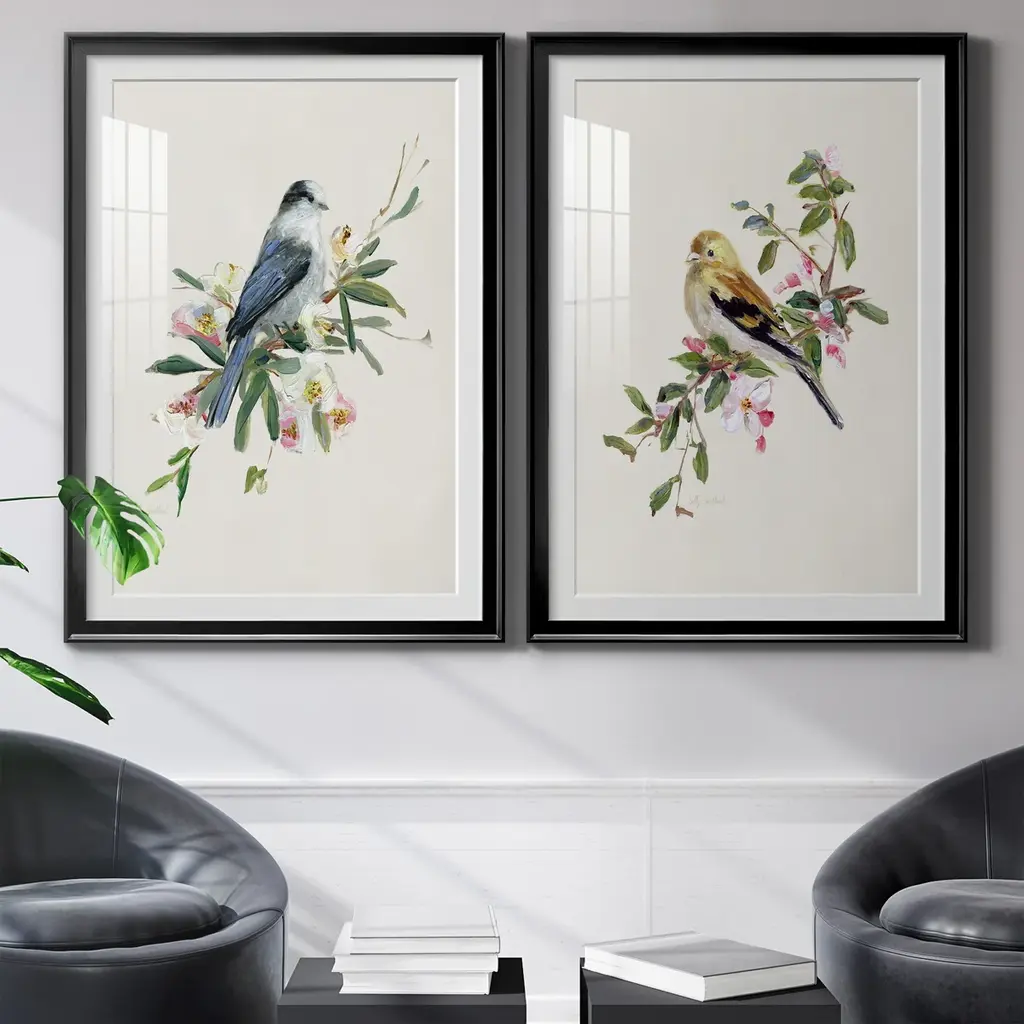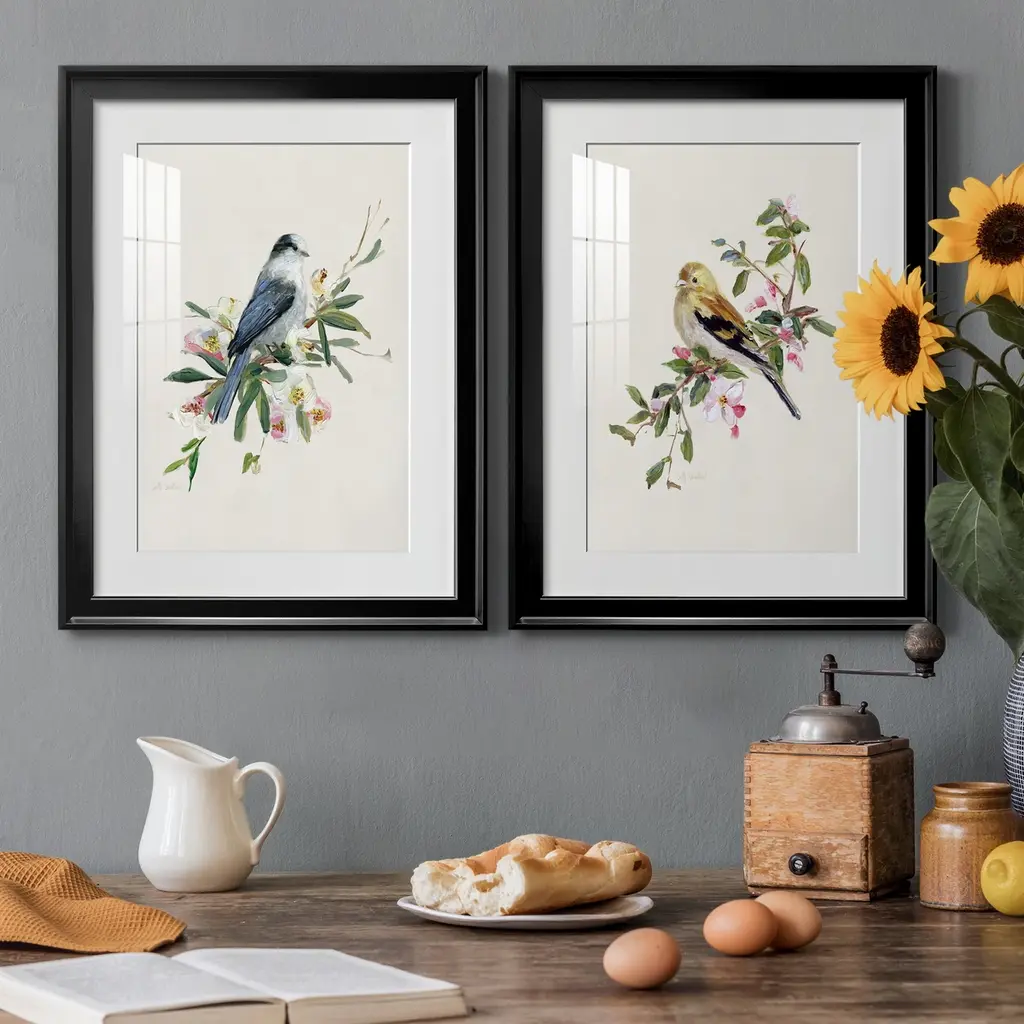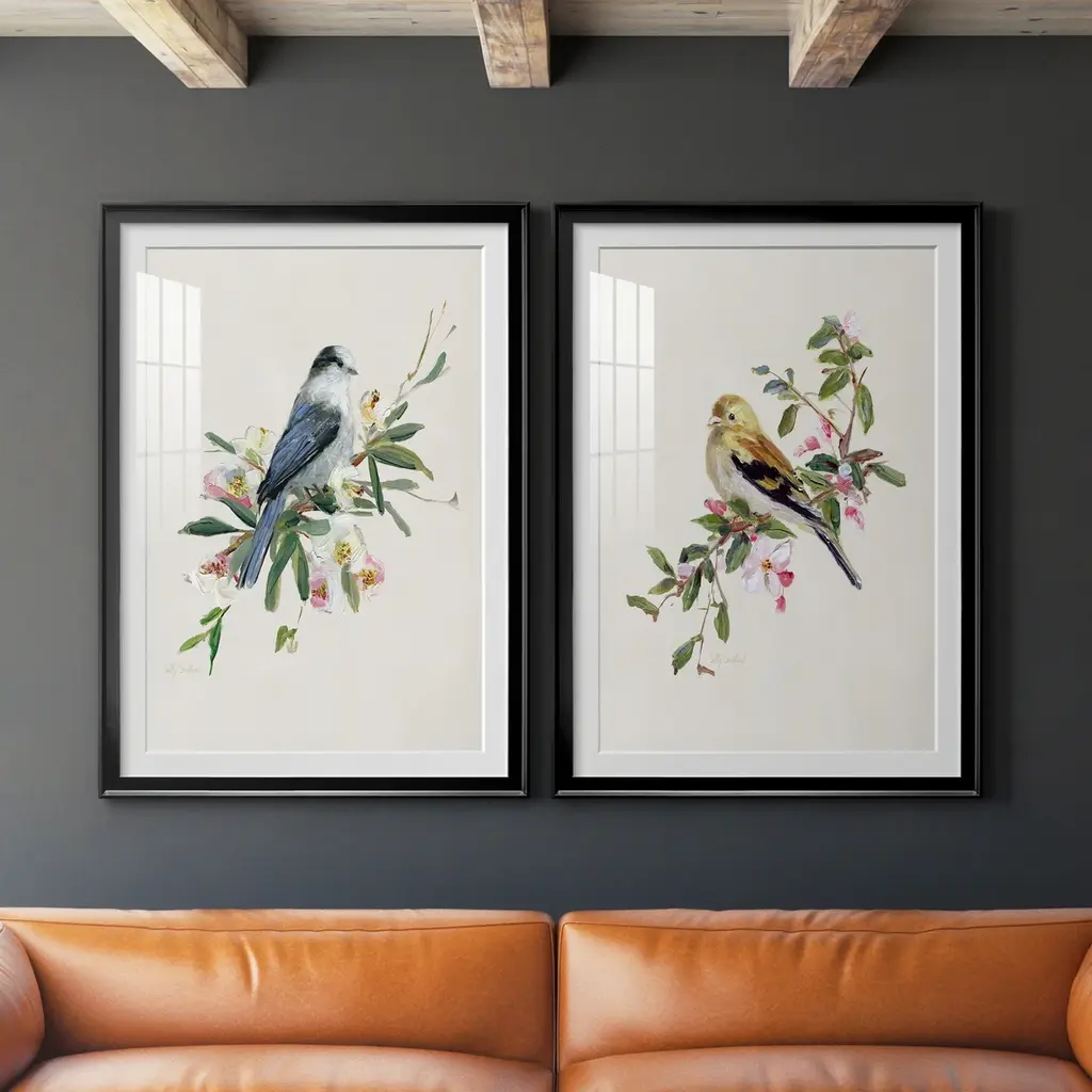 Spring Song Gray Jay Premium Framed Print - Ready to Hang A Premium Framed Print created to last. Framed in distressed wood and available in an array of sizes and colors Featuring a beveled a solid wood stretcher bar, each piece comes ready to hand 4 SIZES AVAILABLE 30.5''X42.5'' - Overall Size 26.5'X36.5'' - Overall Size 22''x30'' - Overall Size 18''x24'' - Overall Size Each piece is made to order. Each piece comes with hanging hardware. Made in the USA Ready to Hang Giclee Paper Print Acrylic Glass Beveled Matt Board