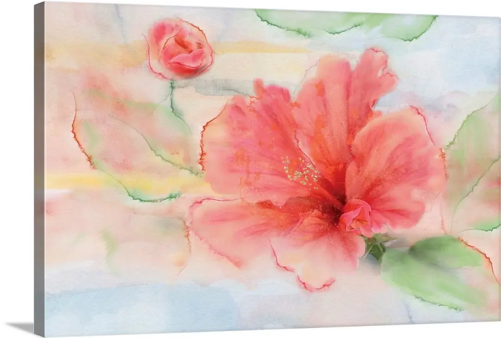 The petals open to show the beauty of a lotus flower, immortalized in this impressionist painting by Seksan Sing-on of Thailand. Rich watercolors on paper give life to this ethereal composition, whose palette arrangement not only captures the bloom's beauty but also its mystic symbolism of enlightenment and spiritual awakening.The painting arrives signed and stretched.