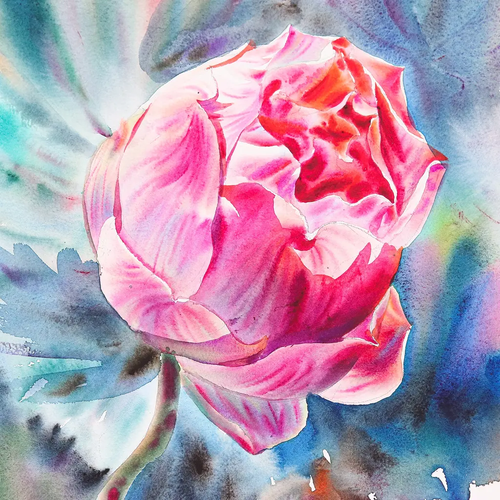 Spring-Themed Impressionist Watercolor Lotus Bloom Painting- Sattabongkot Serenity