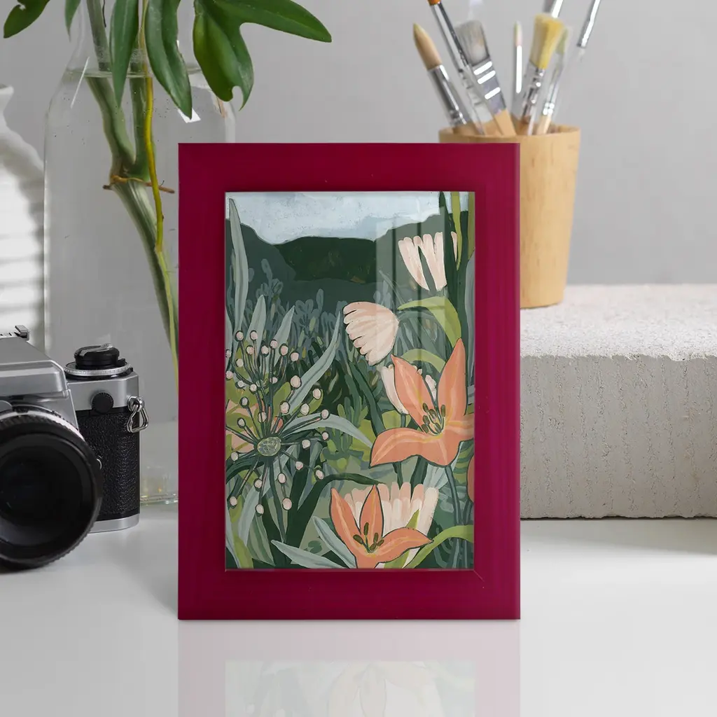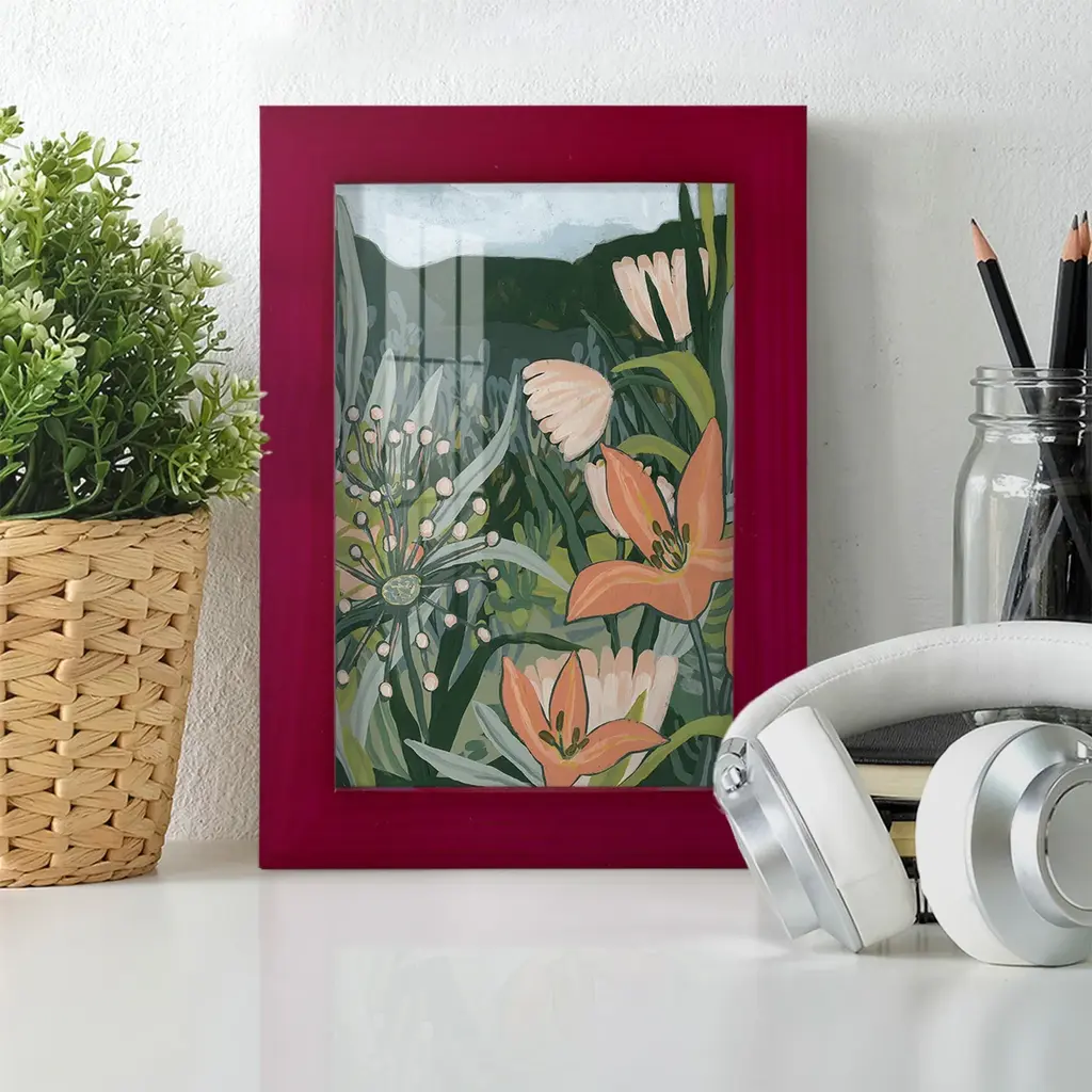 Spring Valley Blooms II -EZ SWITCH Framed Print w/glass-Cherry Red A delightful, framed print. Featuring a solid wood frame with real wood glass. This premium print is giclee quality. In addition, every frame features a removable back and table top stand. This allows you to change your art in the future or to just stand the art on a table for a new look. We are sure you'll enjoy our new series of EZ SWITCH Framed Art. Solid Wood Frame Real Glass Removable / Replaceable Art Built in Tabletop Stand Sizes range from 4x6 up to 12x15 - buy just one or pair them up as sets as you see fit.