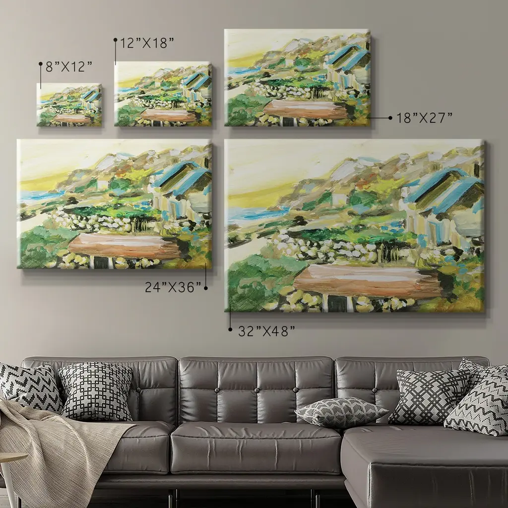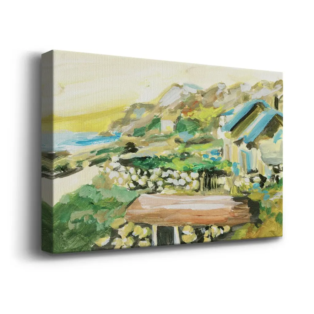 Spring Village IV Premium Gallery Wrapped Canvas - Ready to Hang A premium hand stretched gallery wrapped canvas print created to last. Featuring a beveled a solid wood stretcher bar, each piece comes ready to hand 6 SIZES AVAILABLE 8''X12'' - Overall Size 12''X18'' - Overall Size 18''X27'' - Overall Size 24''x36'' - Overall Size 32''x48'' - Overall Size 40''x60'' - Overall Size Each piece is made to order. Built to Last Each piece comes ready to hang Solid wood stretcher Fade and Water resistant Made domestically